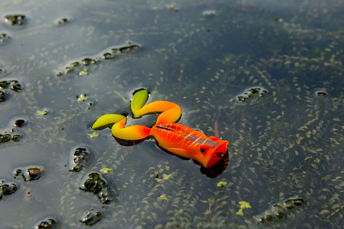 Буйная растительность покрыла меляки и речные заливы. Использование даже блёсен незацепляек и плавающих попперов стало проблематичным. Положить конец щучьему разбою и беспределу в таких местах сможет мягкая приманка Kosadaka Target Frog от популярной у российских рыболовов компании Kosadaka.