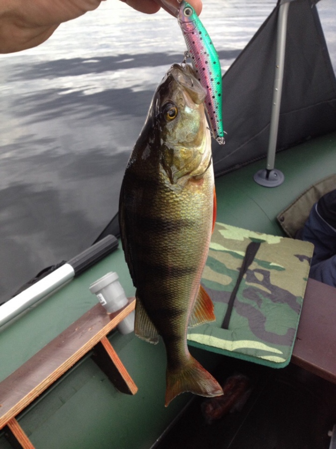 Разловил на первой рыбалке на 3-ем забросе, сначала окунем а потом и щукой. Рядом брат кидал орбита, у него по нулям))) помогал уйти от нуля на одной из рыбалок, достойный воблер за свои деньги. Цвет tr