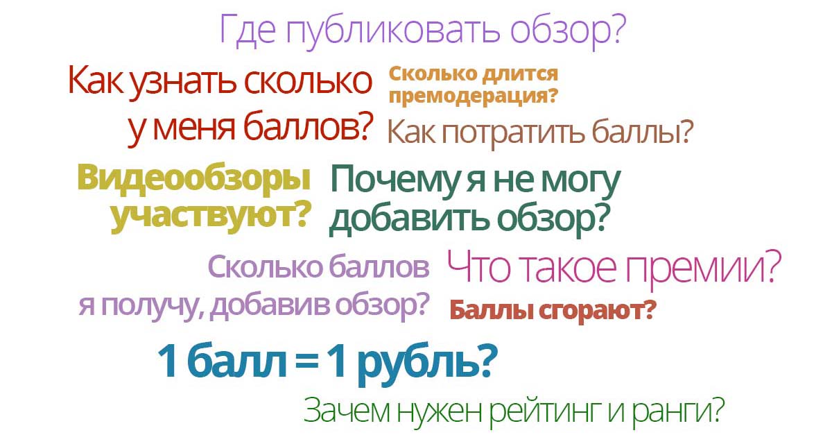 Как узнать, сколько баллов мне начислили за обзор? – Количество начисленных за обзор баллов указывается в конце обзора или в Личном кабинете в разделе "Мои бонусы". Обратите внимание, что данные таблицы обновляются раз в сутки.