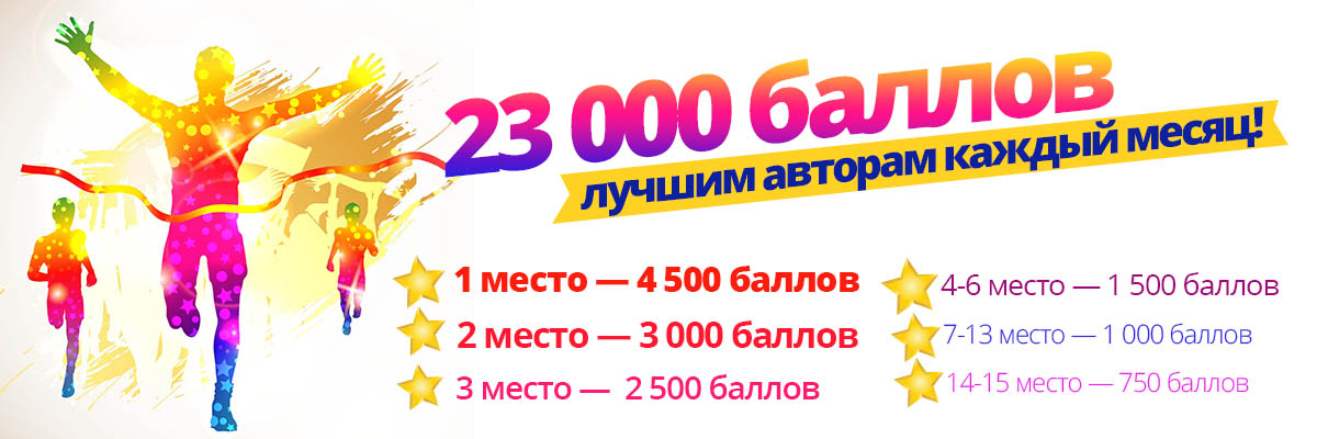 Информация о лучших авторах и премиях публикуется в разделе НОВОСТИ в течение первой полной недели месяца, следующего за отчетным.