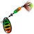 Положительное влияние на уловистость снасти с блесной Pontoon 21 Indi Rah оказывает визуальная привлекательность оформления, которое отличается качеством исполнения и приличной устойчивостью на внешнее воздействие. В перечне модификаций представлено до 25 вариантов расцветки, из которых можно выбрать нужные вариант под заданные условия лова. Особенностью бренда является двухстороннее покрытие лепестка, что позволяет удержать внимание добычи, атакующей вдогонку, со стороны крючка или под углом к боковой проекции. На тройнике предусмотрена мушка, выполненная под цвет основной части конструкции, которая выполняет маскирующие функции и добавляет визуальной привлекательности приманке.