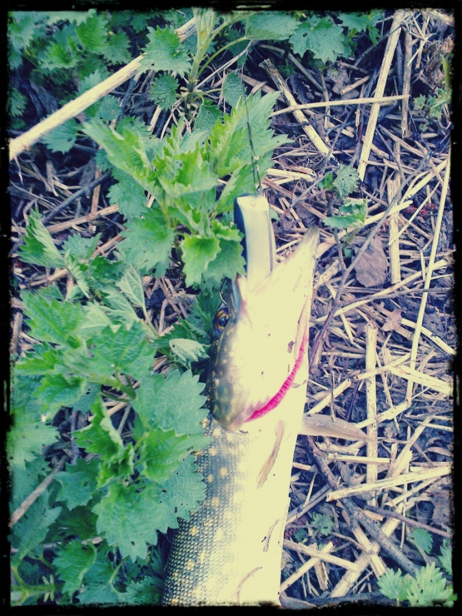 На том участке несильное течение и значительное количество коряг. В одну прекрасную рыбалку мы с «Шейкерами» наперевес гуляли по колено в снегу по берегам этой речки. Клёва не было совершенно, и часа через два пустого хождения по мукам папа забросил резину центр затопленного куста и стал стучать по веткам. И она не устояла! Я только успел подбежать на помощь, но папа самостоятельно победил местного крокодила, протянувшегося без малого на 3 кг. Тот рекорд по этой речке до сих пор не побит.