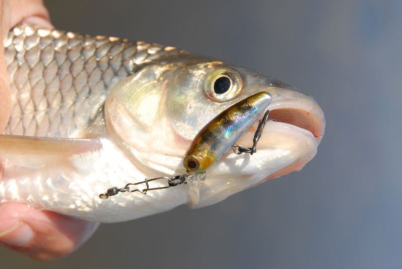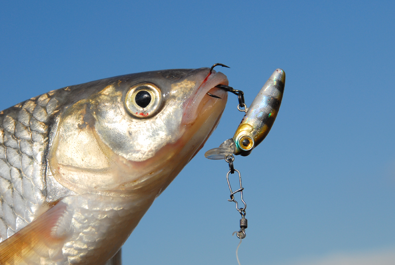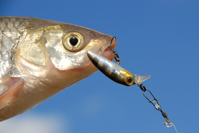 Своим маленьким размером и отсутствием «погремушки» воблер ловит даже пассивную рыбу. Многие воблеры снабжены «погремушками, к которым рыба привыкает и со временем проявляет к ним осторожность. «Тихие» воблеры становятся более уловистыми в водоёмах, которые часто посещают рыбаки.