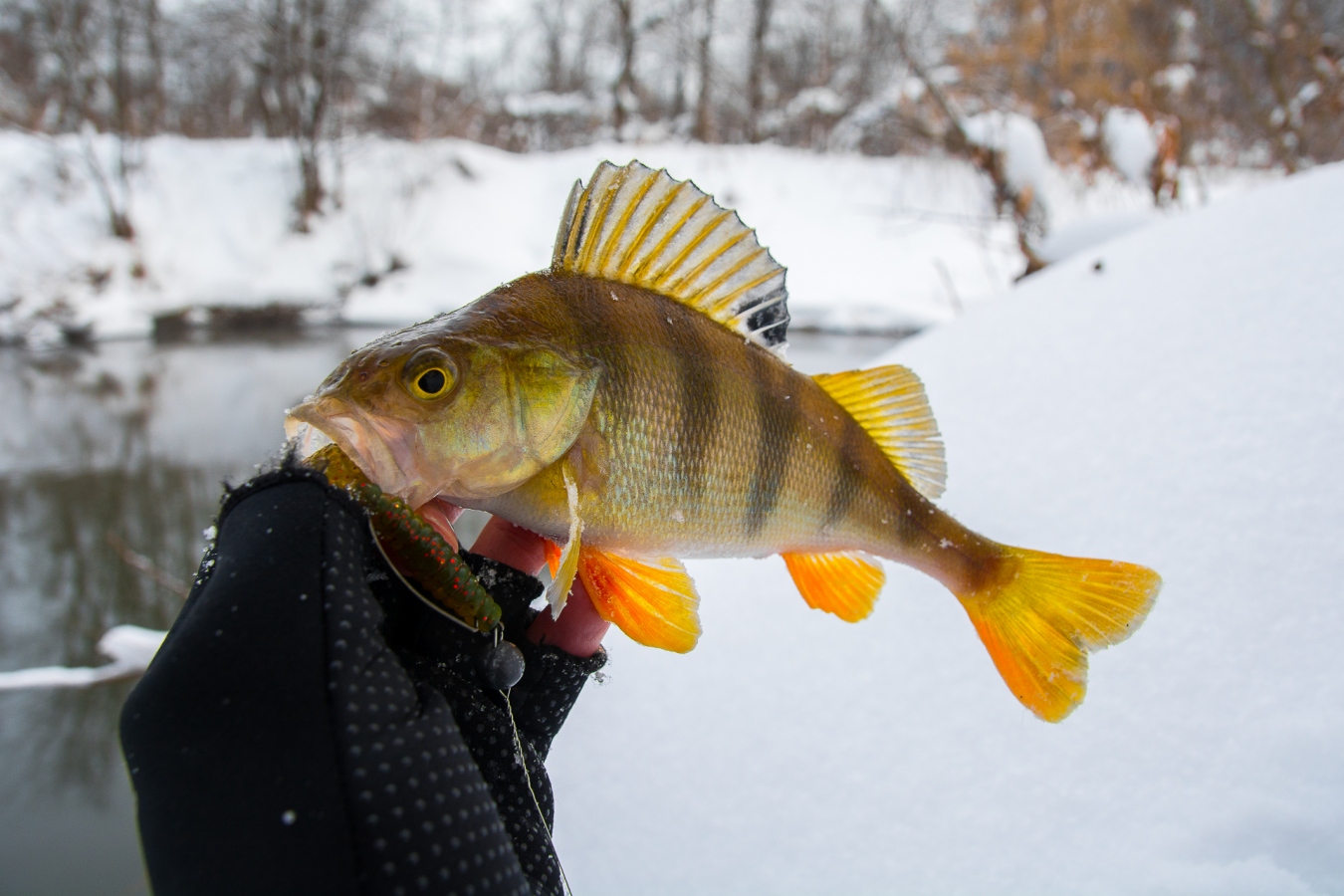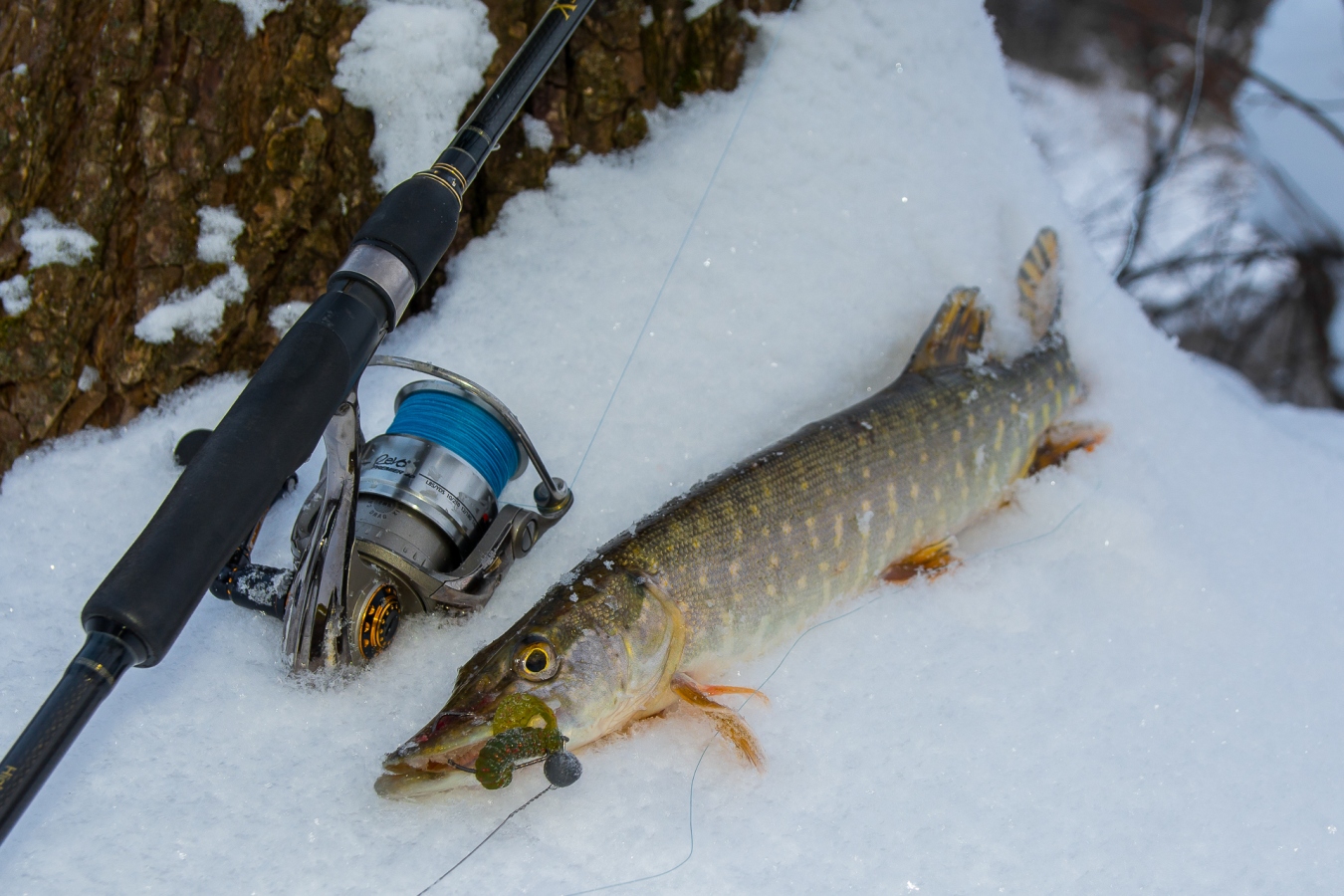 Первый раз этой зимой, я столкнулся с пассивной рыбой в декабре, когда стояли морозы, температура была около -25-27 градусов. Щука стояла в тиховодье за упавшими деревьями, и в небольших глубоких заливчиках, а также в ямах без течения. Спровоцировать рыбу на поклевку с обычным силиконом я не смог, получил лишь пару вялых контактов на поролон, но не поймал, вот тут и вспомнил про лежавший у меня в сумке плавающий силикон Kosadaka Sota F60-100.
