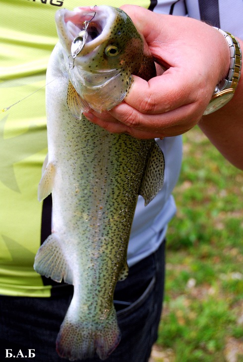 Кроме щуки, SuperCast Evo в течение сезона пользовался неплохим успехом у форелей. Что удивительно, даже самая крупная блесна в размерной линейке (65 мм и 20 граммов веса) совершенно не смущали пятнистых хищниц. И если рыба весом 1,5-2 кг в качестве трофея не вызывала никаких особых эмоций, то вот 400-600 граммовая молодежь, которая вешалась на косадаковский "каст", вызывала, мягко говоря, искреннее удивление. Может, конечно, это было особенностью прудов и кормовой базы, а может что-то есть такое притягательное и манящее в этой приманке для форели.