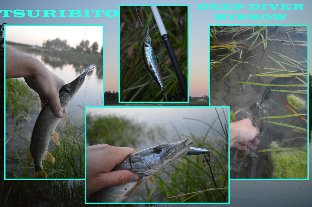 И вот я поставил Deep Diver Minnow и начал обкидывать все кустики и коряжки и уже забросов через пять на ничем непримечательном месте у прибрежной травки садится первая щучка. Мелочь, а приятно! И уже говорит о рабочих характеристиках воблера. В ту рыбалку еще было несколько поимок на этот воблер, и вера в него у меня точно пришла.