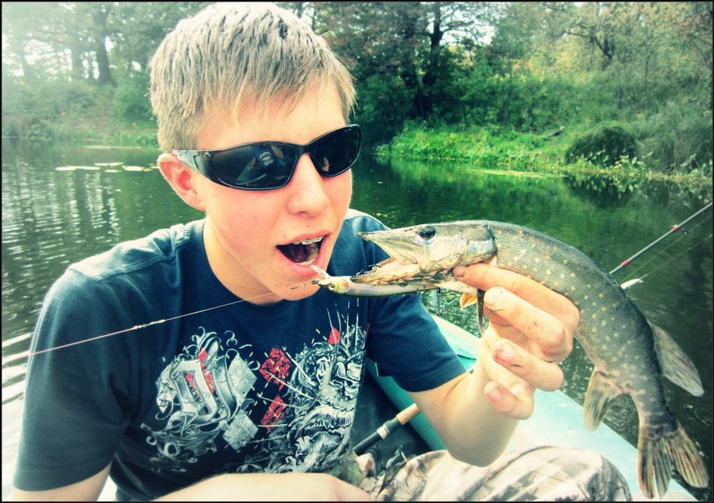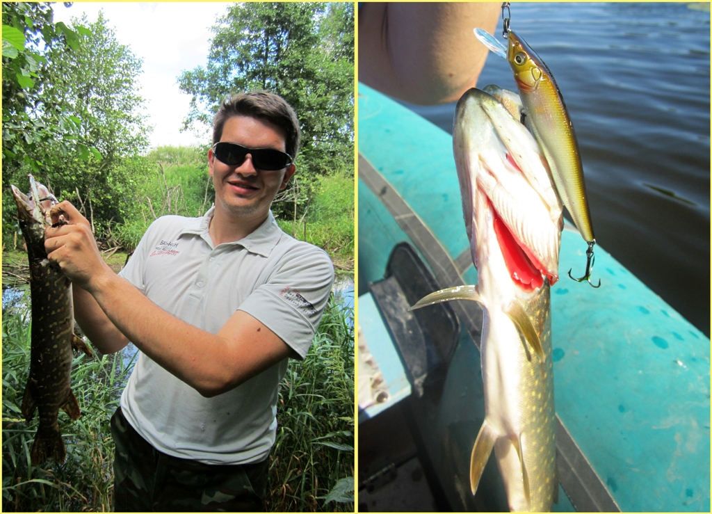 Мы накачали с ним лодку, отплыли метров 20 от места нашей стоянки и начали ловлю. Начали с привычной "мелочевки" 60-70 мм, но лишь пару поклевок у меня, для брата это все в новинку. Тут я и достал этот шедевр и понеслось! Заброс, рывочек / пауза, еще рывочек и только делаю паузу, как резкий и хлесткий удар настигает меня, есть контакт! Первая щучка в активе, некрупная, но приятно. Потом ловлю с этого же места еще штук 7 до килограмма. Брат уже выпрашивает воблер, отдаю ему Vision'a и пошло поехало - даже его нелепые движения раз за разом приводили к поклевкам местных щучек и дарили множество позитивных эмоций! В итоге десятка три тогда на этот воблер удалось поймать и брат вскоре приобрел себе такого же, родился еще один "воблероман".