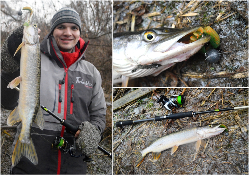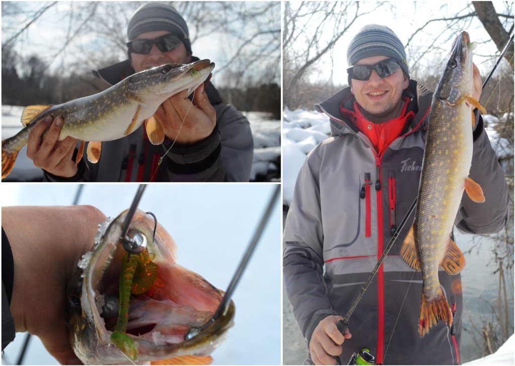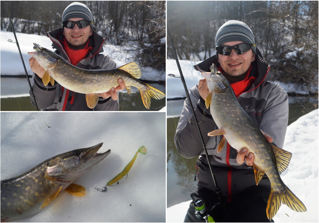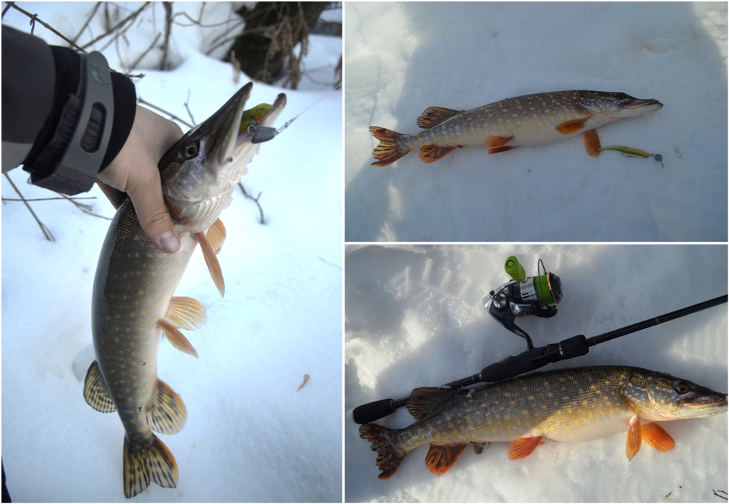 К счастью, друг также обладал этой новинкой от Kosadaka и поделился Аваруной, правда, уже в размере 10 сантиметров, расцветка та же. Что бы Вы думали? Подходим на первое перспективное место, тестовый заброс доверен мне в качестве возмещения морального вреда за пару обидных сходов чуть ранее. Первый же заброс, зубодробительный удар, подсечка, и щука надёжно сидит на том конце. Кило триста - тоже хорошо! Отпускаем и снова в путь.