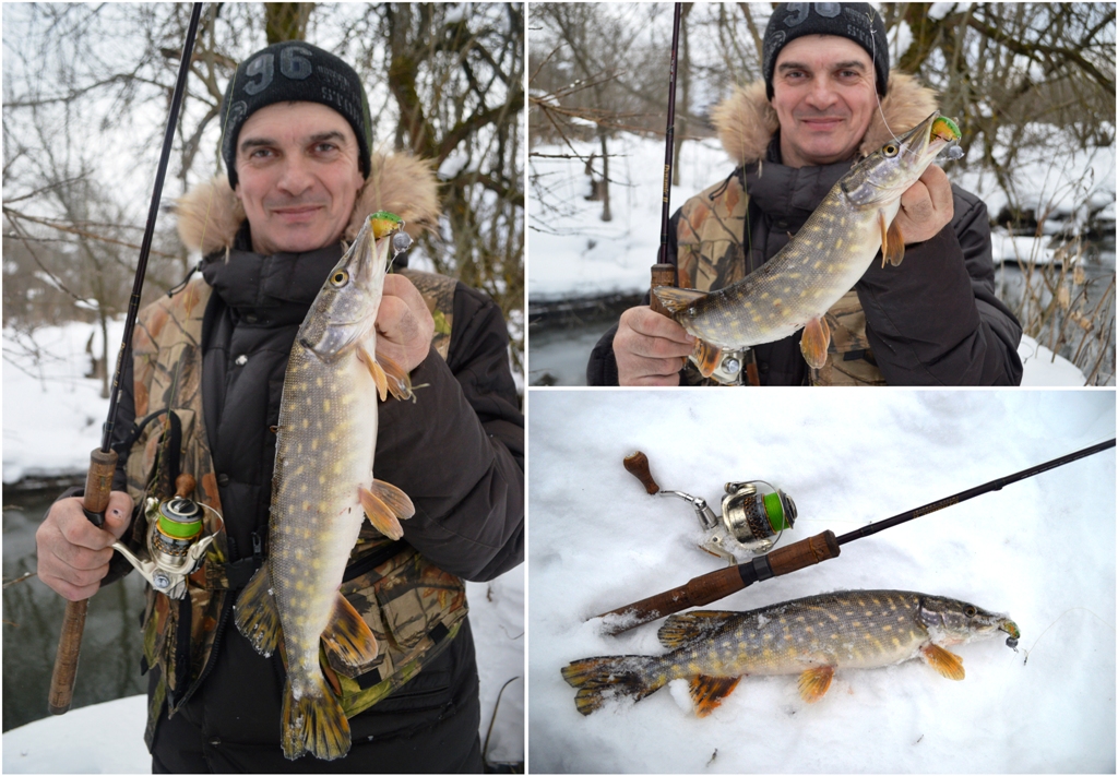 Я прицепил заранее оснащенную Аваруну в 88-м исполнении в своей любимой расцветке (BOT), последнюю из оставшихся у меня. Оснащена она была также жалом вниз. Мы разделились и пошли с товарищем в сторону непролазных коряг по нехоженым "тропам", куда даже постоянные посетили этой реки не рискуют пролезть. Снег по колено, пар из ушей, но фанатов-щукарей ничто не остановит, и мы прорвались на нужный участок.