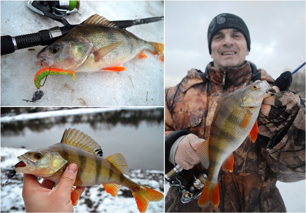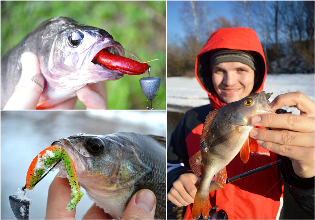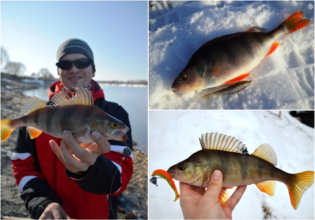 Помню в первую свою рыбалку со 153-м One'Up Shad'ом в конце января 2017 года. Приехали мы на речку без большой надежды на успех. Началось все с дальних забросов и тяжелых (для меня) грузов, ведь нужен был дальний заброс. Забросе на третьем первая поклевка и Sawamura приносит мне симпатичного окуня, он не смог устоять перед огненной новинкой.