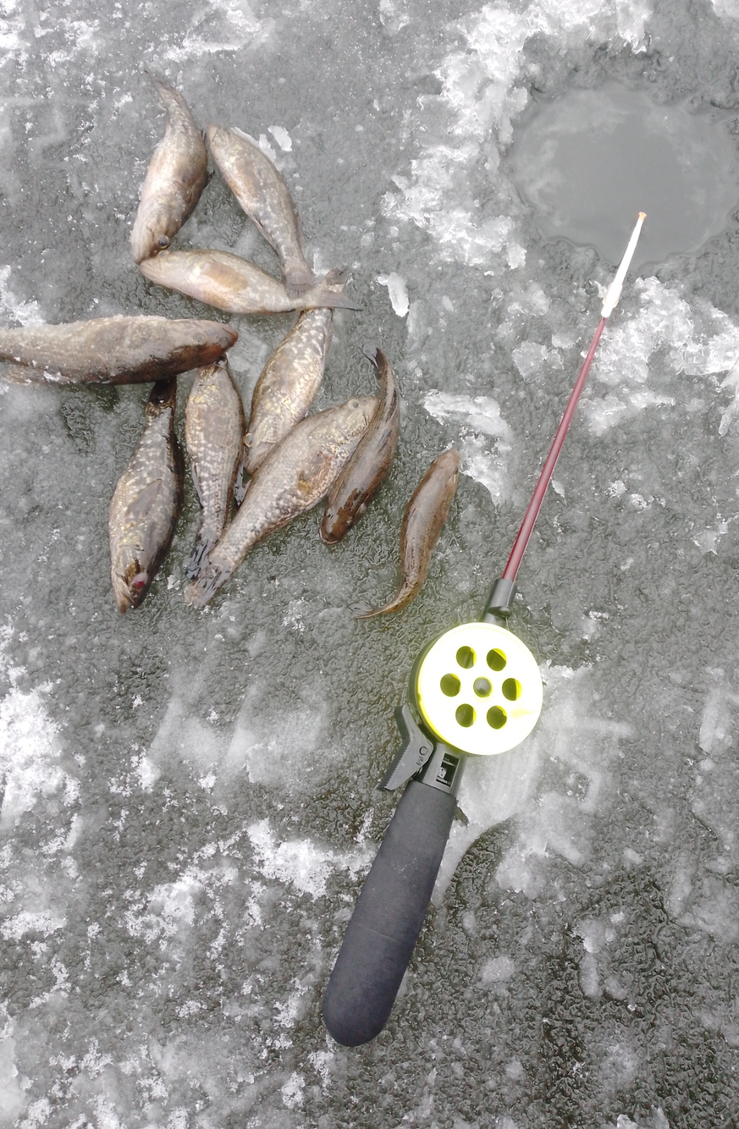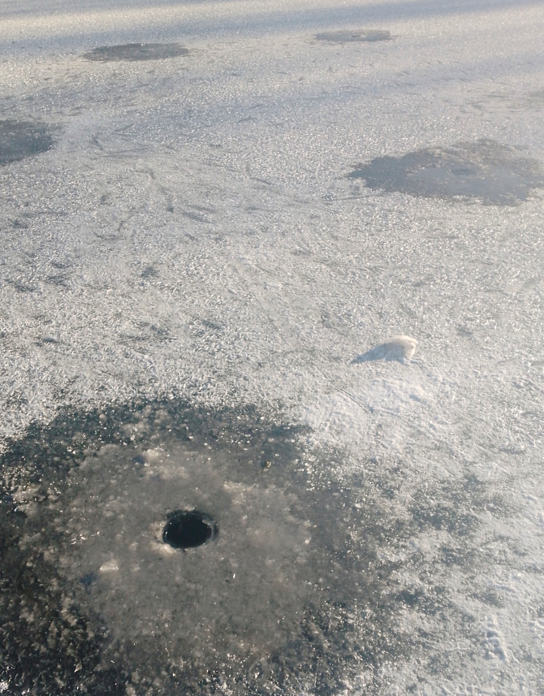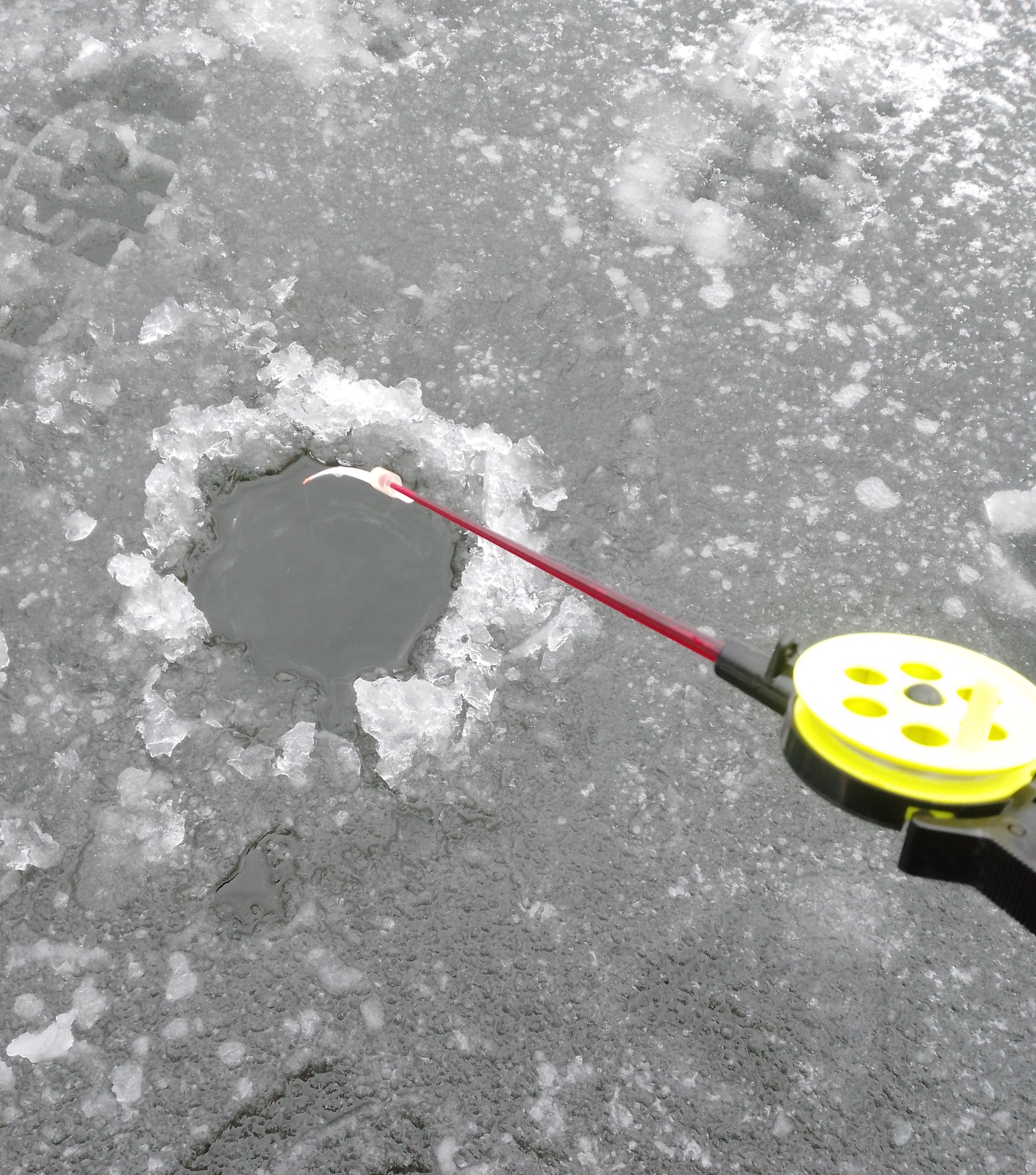 Почему ещё советую ориентироваться на уже присутствующих на льду рыболовов - ловлю вам придется осуществлять в их лунках, ведь ни пешню, ни ледобур вы в поездку, по понятным причинам, взять с собой не можете.