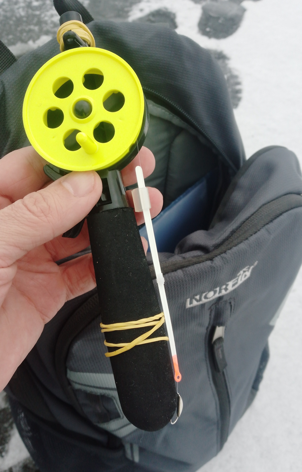 Это может быть удочка для блеснения, если вам нравится ловить на блесну или балансир; это может быть безнасадочная снасть, если вы фанат такой ловли; я же зимой в командировки беру с собой обычную удочку для ловли на мормышку.