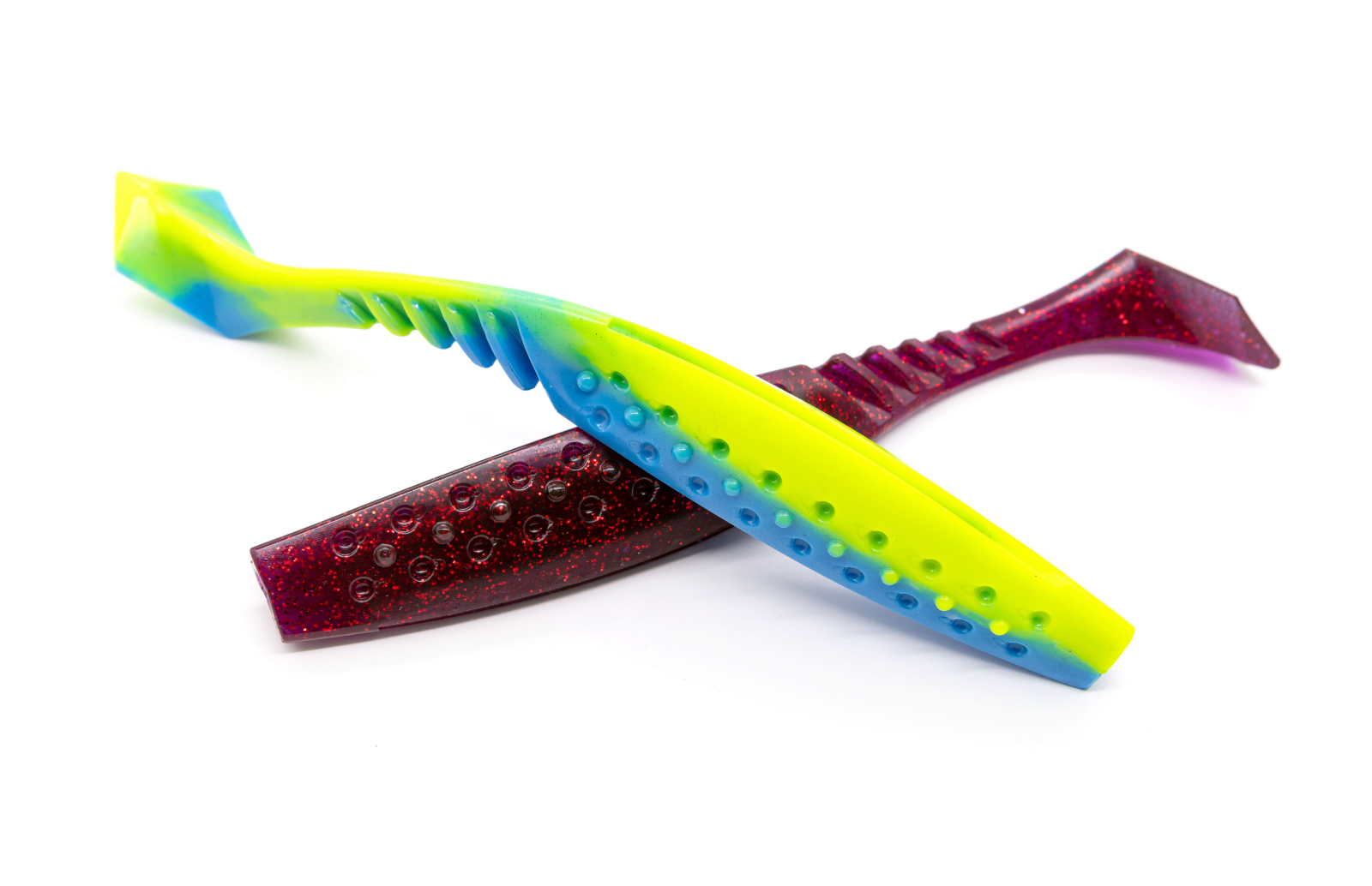С моей точки зрения, большая приманка - это силикон от 7 дюймов и выше. Данная приманка уже имеет некоторый самостоятельный вес (обычно от 20 грамм без учета огрузки) и требует особенное удилище c большим тестом. Можно ловить любым доступным способом, но чаще всего для ловли на такие приманки применяется пелагическая ловля в толще воды.