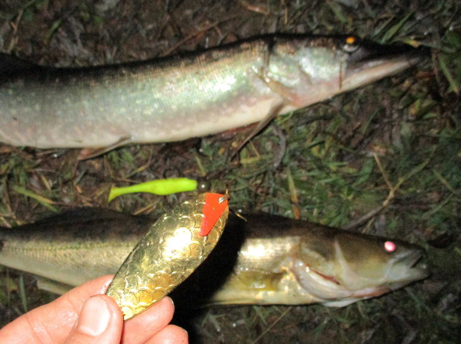Я не зря на заглавной фотографии материала показал вертушку, на которую мне, в своё время, удалось взять трофейную для меня щуку ночью. Чем ярче раздражающий эффект от приманки, тем больше шанс на поклевку рыбы ночью.