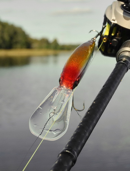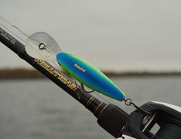 Первое, что обращает на себя внимание, когда видишь эти приманки это, конечно же, большие, а часто и огромные размеры заглубляющей лопасти, сравнимые с размером самого воблера. Причём как по длине, так и по ширине. Что собственно и обеспечивает их заглубление, которое превышает упомянутые четыре метра. Придаёт им высокочастотную, с довольно приличной амплитудой, несравнимую по мощи и передаваемой в руку вибрации, ни с какими другими видами воблеров игру. А заодно создаёт большое лобовое сопротивление, то есть делает их чрезвычайно упористыми приманками. Что накладывает определённые ограничения на используемые комплекты снастей.