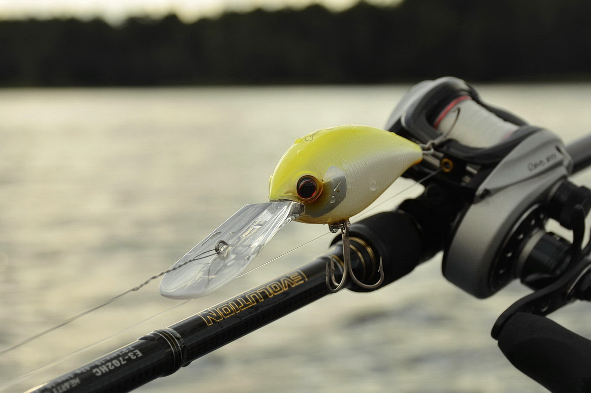 Удилище для экстра диповых кренков должно обладать умеренной жёсткостью и приличной упругостью, статический строй (изгиб) от быстрого до умеренно быстрого (fast-reg.fast), в динамике же лучше, чтобы оно было побыстрее. Длину выбираем, отталкиваясь от условий. Ловля по площадям – берём подлиннее. Для ловли на локальных точках можно выбрать и коротыша.