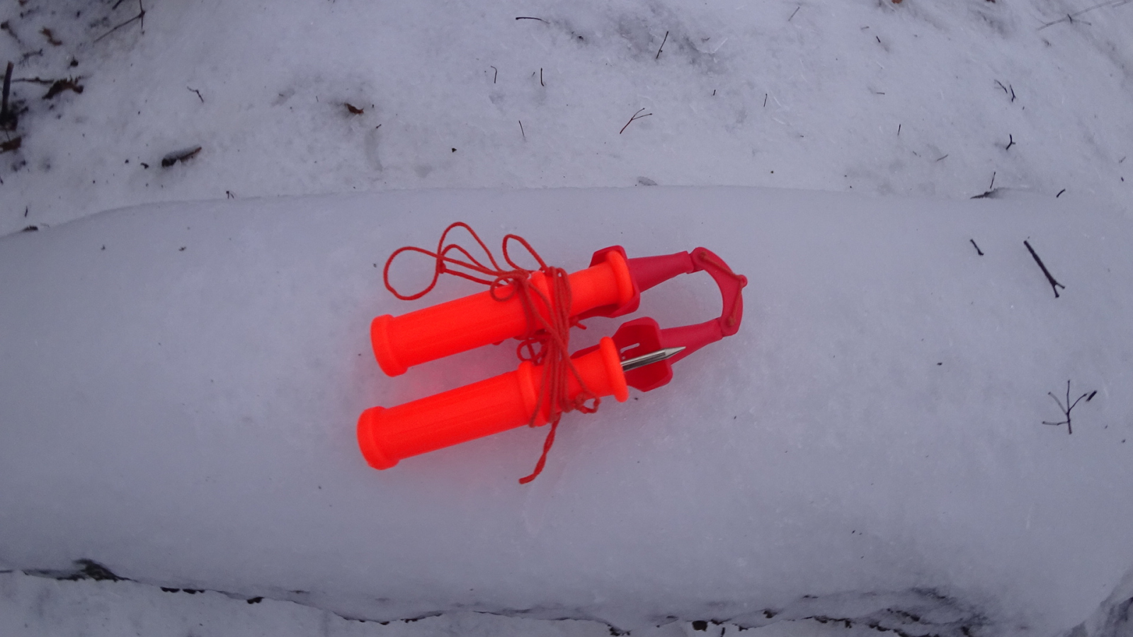 Так вот этот шнур нужен не для того чтобы одна из спасалок не потерялась, а для того чтобы вешать их на шею. Итого, в случае чего, расстёгиваем куртку и имеем прямой доступ к спасалкам. Это намного лучше чем держать их в кармане и, тем более, в зимнем ящике. Лично я без спасалок на лёд не выхожу.
