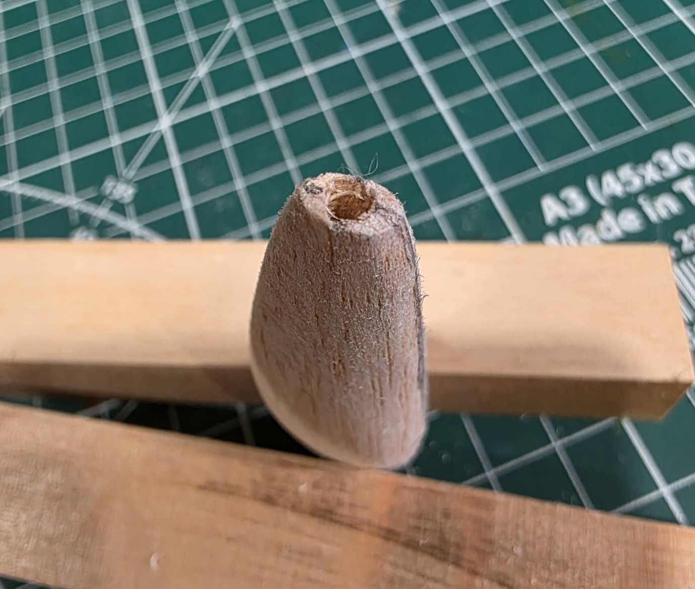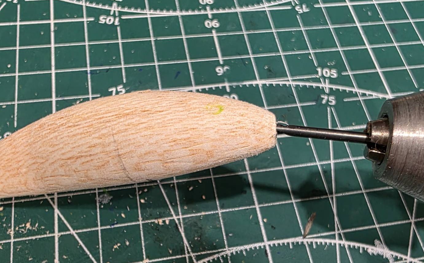 4. Маленькая хитрость: проделать отверстие в той части лопасти, которая будет вклеиваться внутрь. Это поможет усилить конструкцию, лопасть будет достать очень сложно.