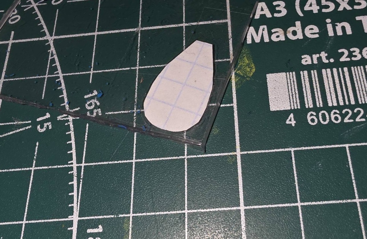 1. Изготовление симметричного образца из бумаги, у меня форма была из чертежа, но можно нарисовать от руки. В качестве материала я использую оргстекло 2 мм.