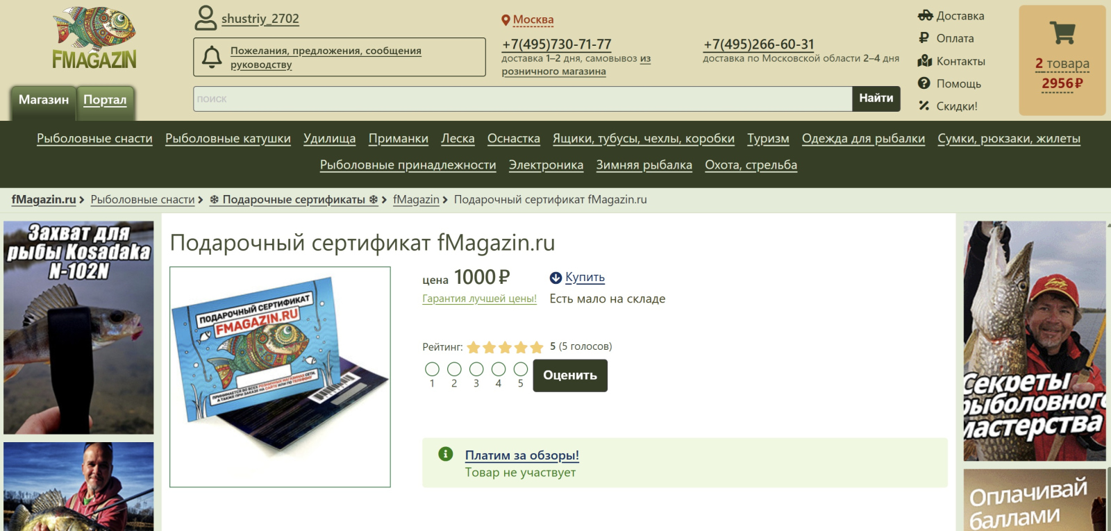 Когда деньги дарят, я не очень люблю, так как обычно делюсь с женой такой добычей, а вот сертификат в рыболовный - другое дело, он ей не нужен абсолютно (шутка).