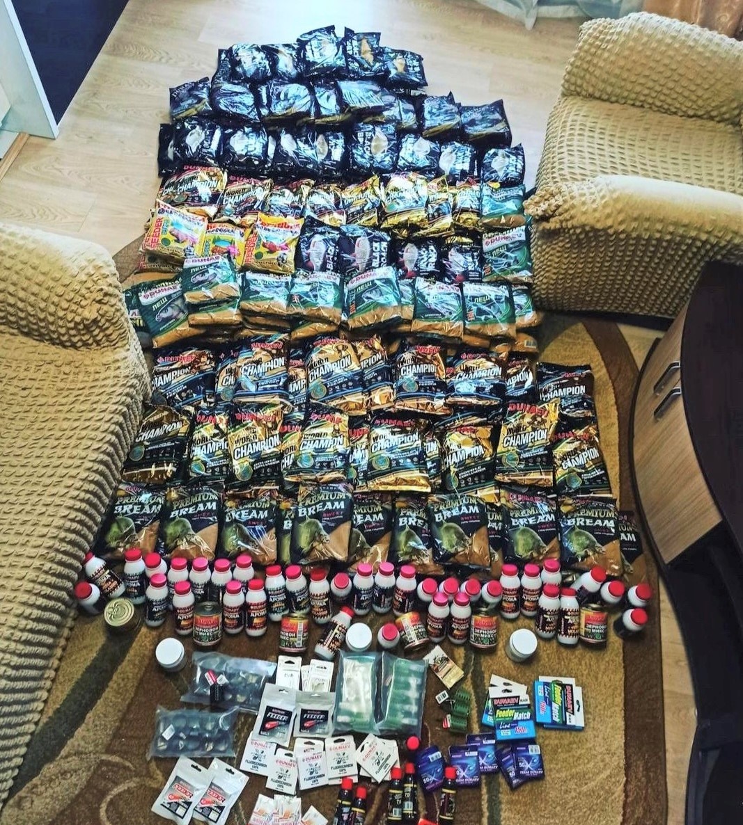 На фидер мы с приятелями ловим очень много и часто, начиная в марте и заканчивая с первым льдом. В среднем, на сезон я беру не менее 50-70 кг прикормки, 20-30 банок сиропов и ароматизаторов, примерно столько же банок с кукурузой и коноплей.