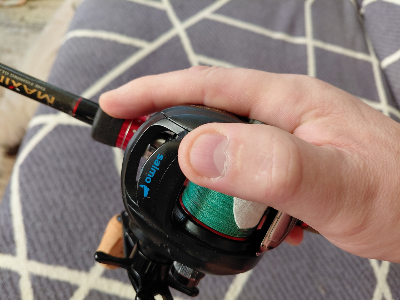 То есть мы одновременно обхватываем катушку и удилище ладонью.