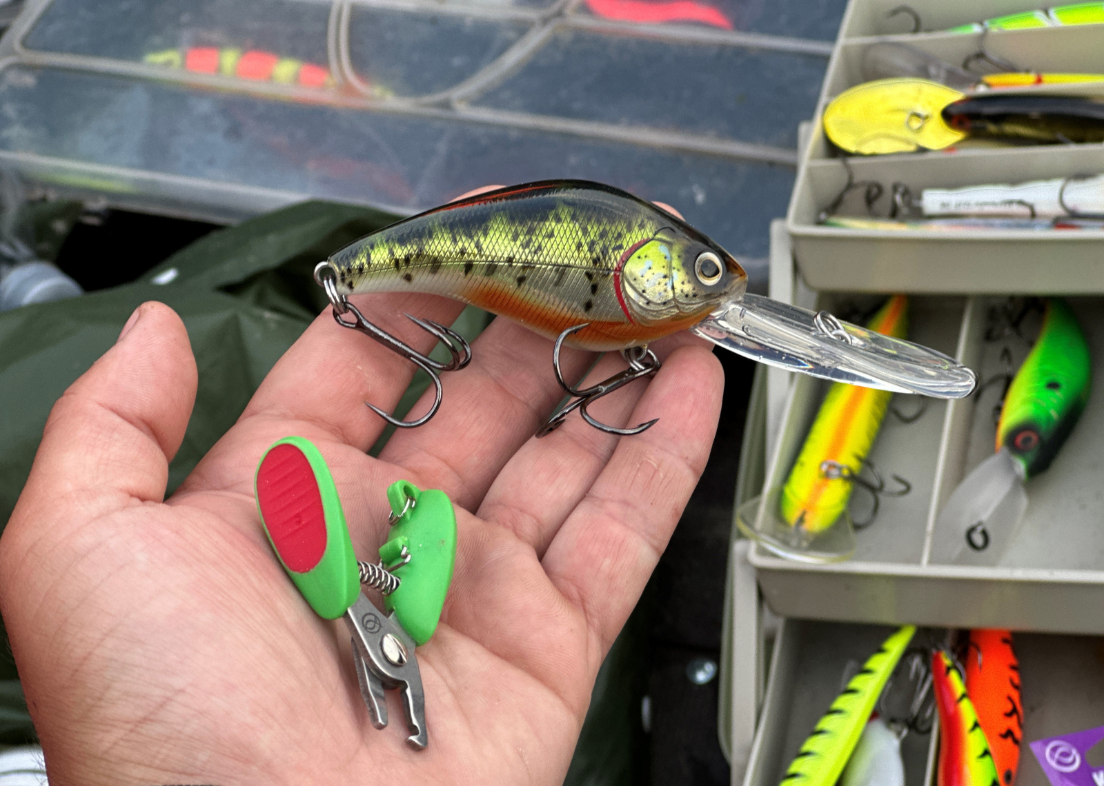 У меня был случай, когда увлеченный в моменте ловли, я положил пару воблеров и вертушек в карман куртки. Закончилась ситуация печально. О приманках я вспомнил только дома, когда все запуталось, а тройники пришлось с подкладкой вырезать из кармана.