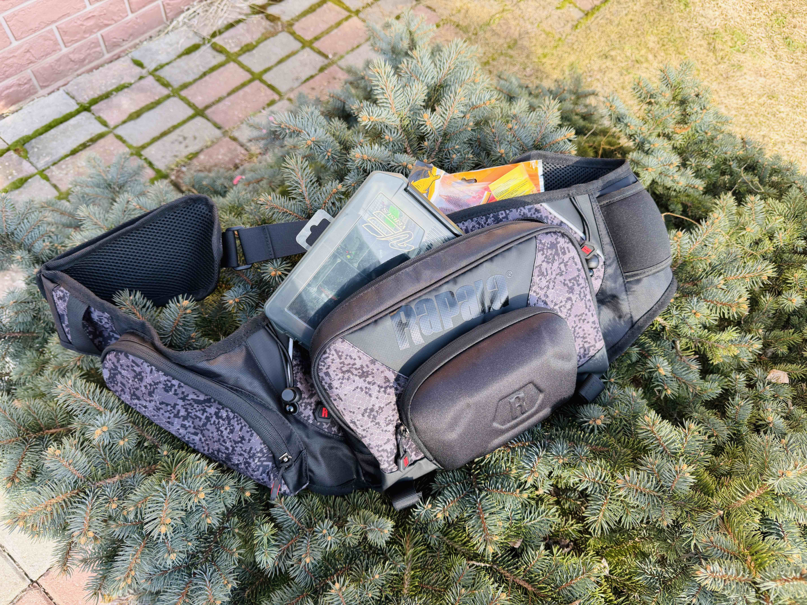 Сейчас основная моя сумка - это Rapala Urban Sling Bag. Шикарная качественная вещь, куда помещается коробка с приманками, весь инструмент, солнечные очки и еще пакетов 10 силикона.