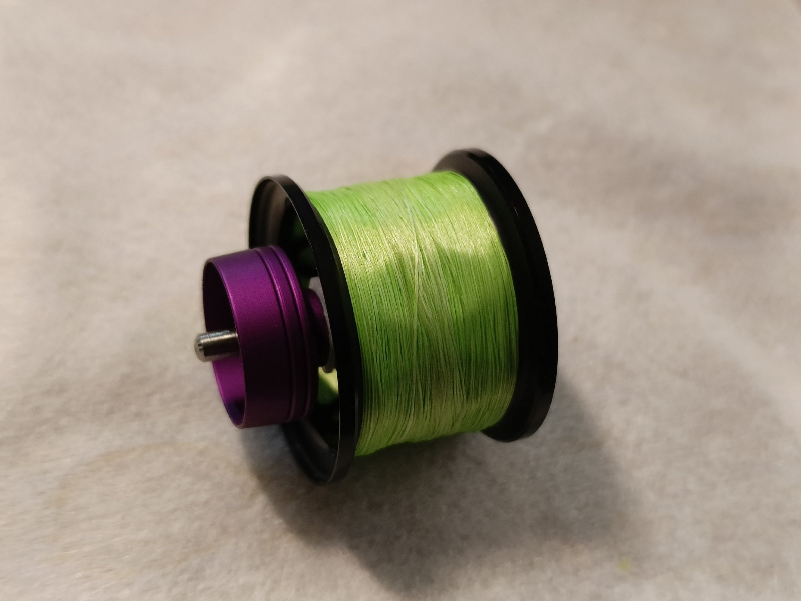 Дошла очередь испытать на небольших приманках мой Альфас от Дайвы. Отличная, крепко сбитая катушка, очень долго крутящаяся, отработавшая в стоке на воблерах целый сезон. Родная шпуля там весит 12 г., поэтому для мелких приманок зимой приобрёл более лёгкую от китайской Rays,Studio весом всего 7 г. с такой же системой SV.