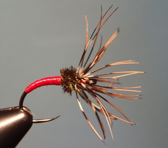 3. Futsu Kebari (普通毛鉤) - «универсальная мушка». Перья поставлены перпендикулярно к цевью крючка, как «воротничок». Устойчиво держится в потоке, не заваливается. Проводка: комбинированная - дрейф и вибрация. Лучше всего использовать для среднего и умеренного течения.