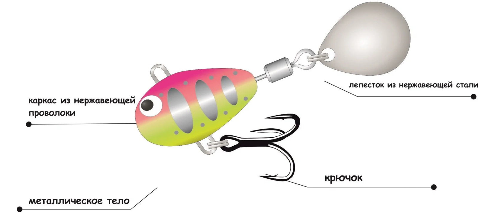 В большинстве моделей все эти элементы соединены единой проволочной рамой (обычно из нержавейки), что придает приманке высокую прочность. Некоторые производители добавляют к основной конструкции светоотражающие глазки, люминесцентное покрытие или даже небольшую кисточку из силикона на крючок, но это уже опции.