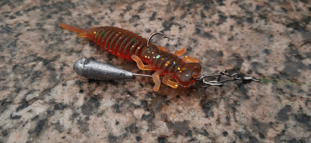 Данная креатура будто бы создана специально для ловли быка. Тонкие активные лапки, усики и клешни создают мелкочастотную игру, имитирующую небольшого рачка. А узкое прогонистое тело, заострённое к хвосту, легко залетает в топку в один присест.