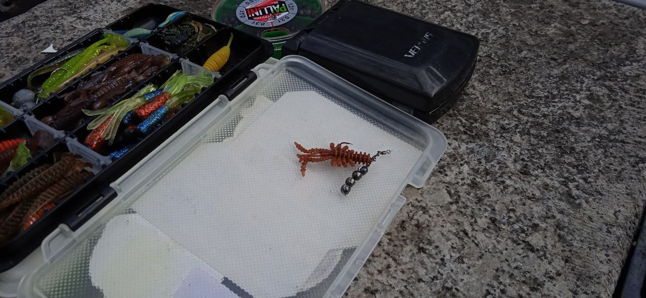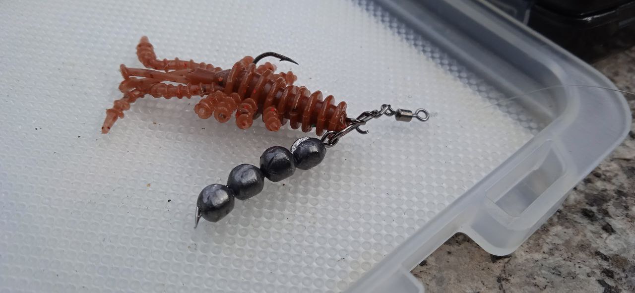 Стоит отметить единственный минус этой приманки. Если мелкий бычок очень активен, то вам просто не обойтись без кучи робких дрожащих поклёвок и откусанных конечностей. Но даже так Мося работает исправно. Без усиков и клешней приманка выглядит как какая-то букашка или паучок, притягивая ещё больше внимания мелочи.