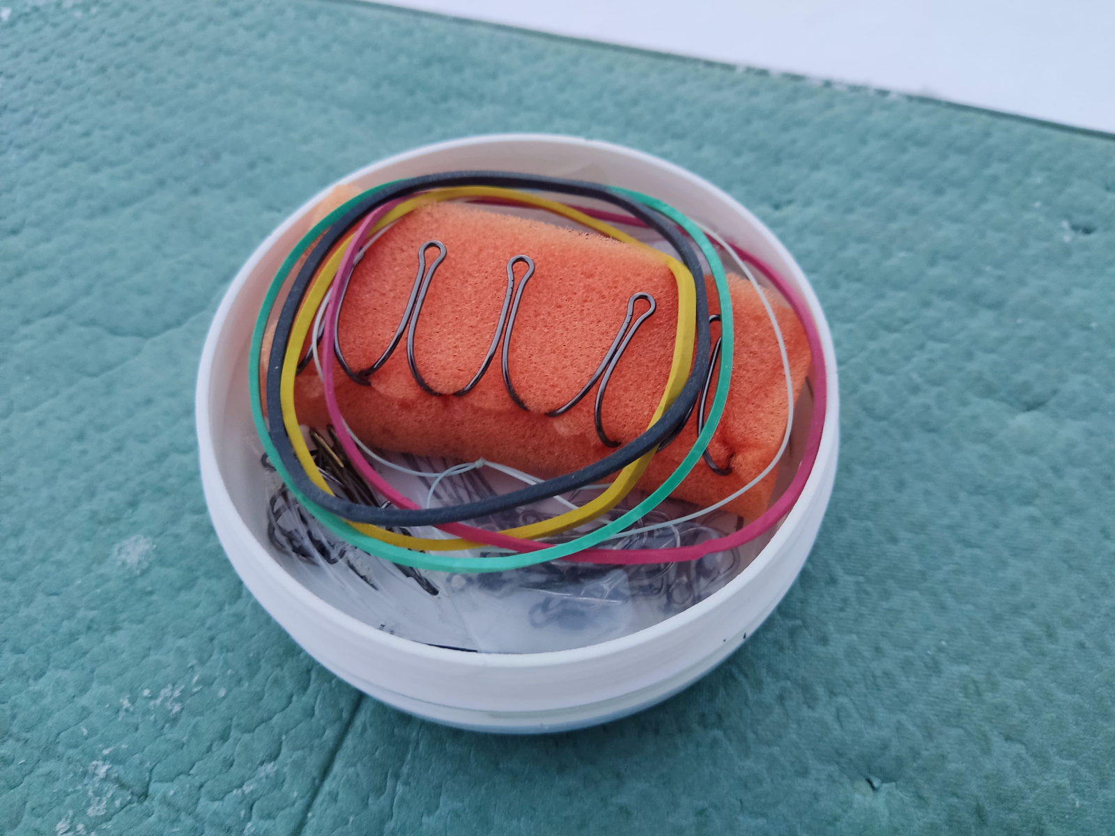 Так же я имею отдельную коробочку, в которой хранятся дома навязанные поводки из флюра, так и имеются покупные стальные. Пару слов о поводках, флюр я с собой не беру, он объективно не нужно, когда есть запас поводков, длина же поводков максимально большая – 40 см. Я несколько раз сталкивался на рыбалке, когда жерличники жаловались на постоянные откусы. Щука действительно перекусывала леску, но лишь потому, что их поводки на вид были по 15-20 см… Также в запасе я имею и некий набор крючков, тут присутствуют как двойники и тройники, так и одинарные разных размеров, чаще всего популярных. Про груза тоже стоит сказать, т.к. и их небольшой запас спрятан в коробочке. Если смотреть объективно, то имея данную коробочку ничего не стоит собрать жерлицу на водоеме с нуля.