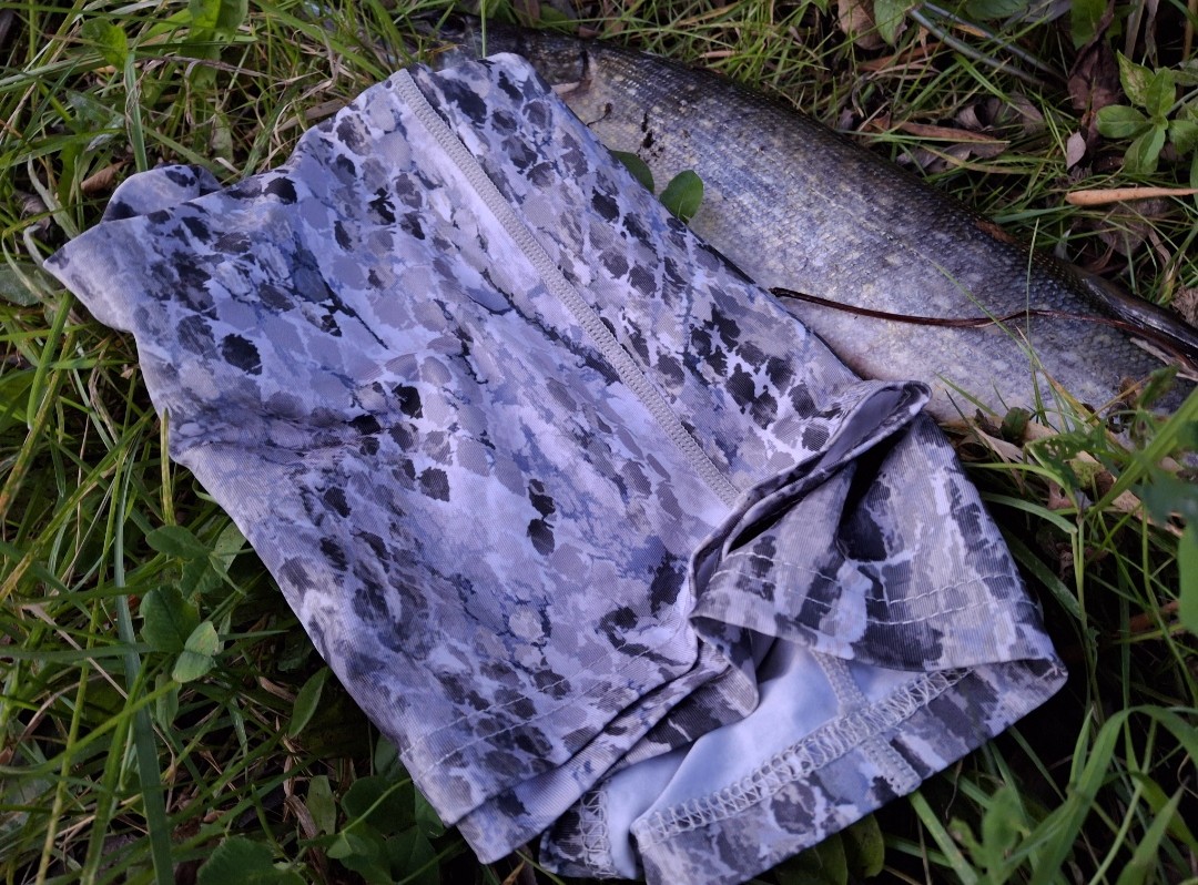 - Тонкий, но в меру плотный. Удачно плотный, где и комары не прокусят ткань, и кожа рыболова не будет испытывать парникового эффекта.