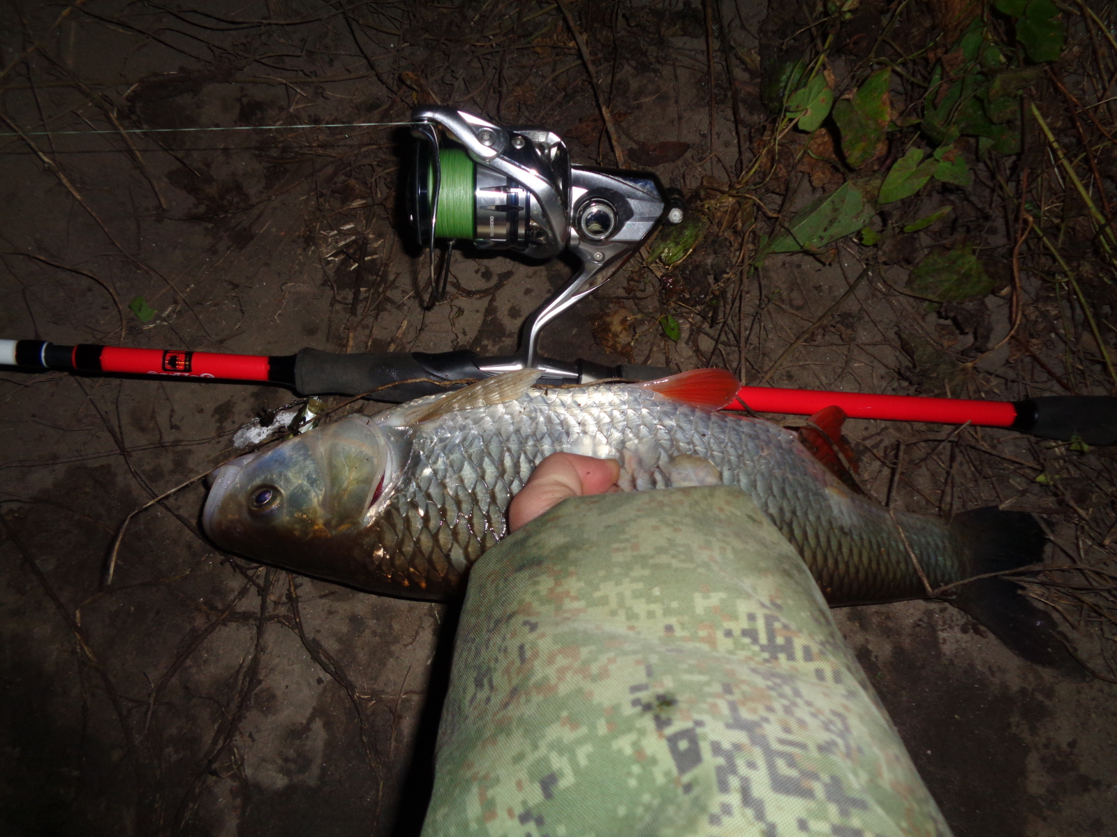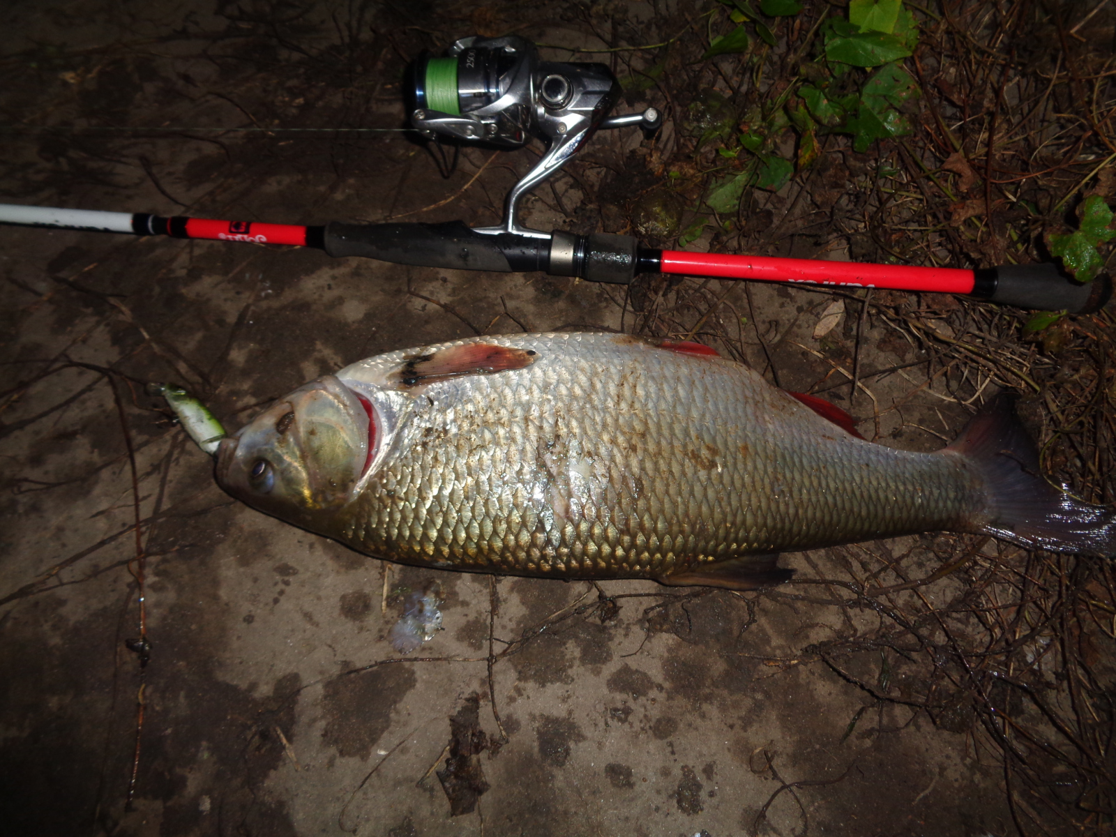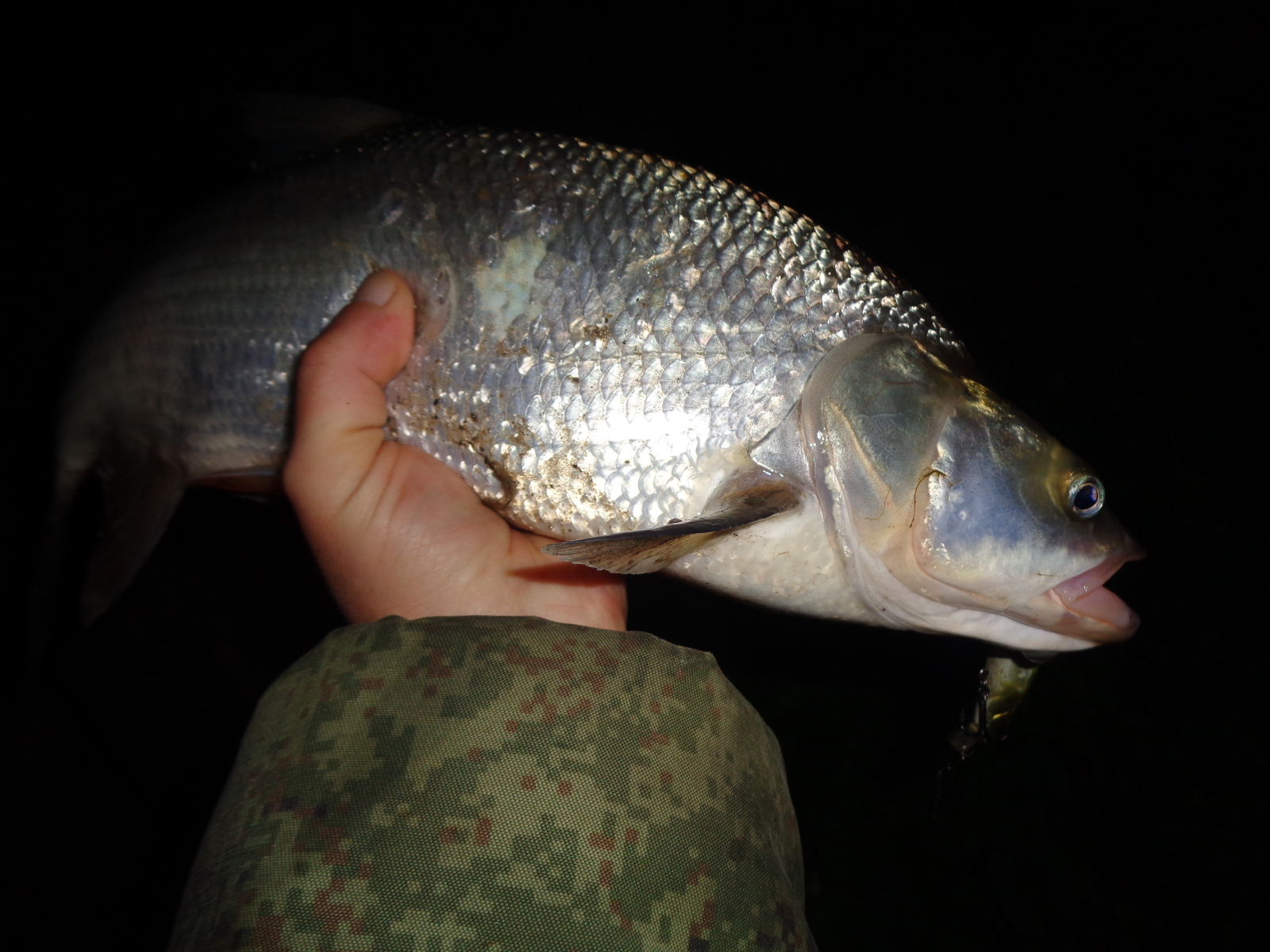 Печально вздохнув, я произвёл очередной заброс, не на что не надеясь. Смотрю в небо, ищу луну, и тут мой спиннинг содрогнулся от жестокого удара, мгновенье, резкий рывок, удочка чуть не вылетела у меня из расслабленных рук, фрикцион включился (благо, я его ослабил, после потери воблера). Ура, есть контакт, немного обрадовался я. Жерех сделал мощный короткий спурт и остановился. Я приступил к выуживанию.