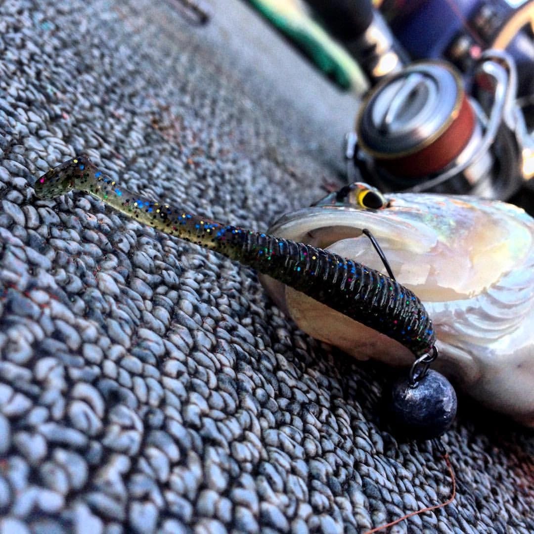 Ну а что же с игрой у Jackall I Shad Tail? Ведь приманка миниатюрная, наверное, требует тонкого и деликатного подхода? Да нет, скажу я вам! Приманка отлично работает как с минимальной огрузкой, например 3г для размера 3.8 дюйма, так и с довольно внушительным грузом, 18 грамм для приманки 2.8 дюйма. Так что надумывать чего-то тут не стоит. Для Jackall I Shad Tail масса груза будет сказываться исключительно на агрессивности колебаний, но никак ни на качестве или стабильности игры. А игра у Jackall I Shad Tail довольно интересная и занимательная. Маленький хвостовой плавничок при средних скоростях проводки создает довольно яркие, быстрые и высокочастотные колебания, что способно привлекать внимание хищника. Такие колебания и правда похожи на виляния хвостиком малька. Но в то же время, несмотря на маленьких хвостовой плавничок и небольшой объем тела приманки Jackall I Shad Tail обладает просто отличным роллингом, как в процессе проводки, так и на паузе. Приманка активно переваливается с бока на бок, что дополнительно провоцирует хищника.