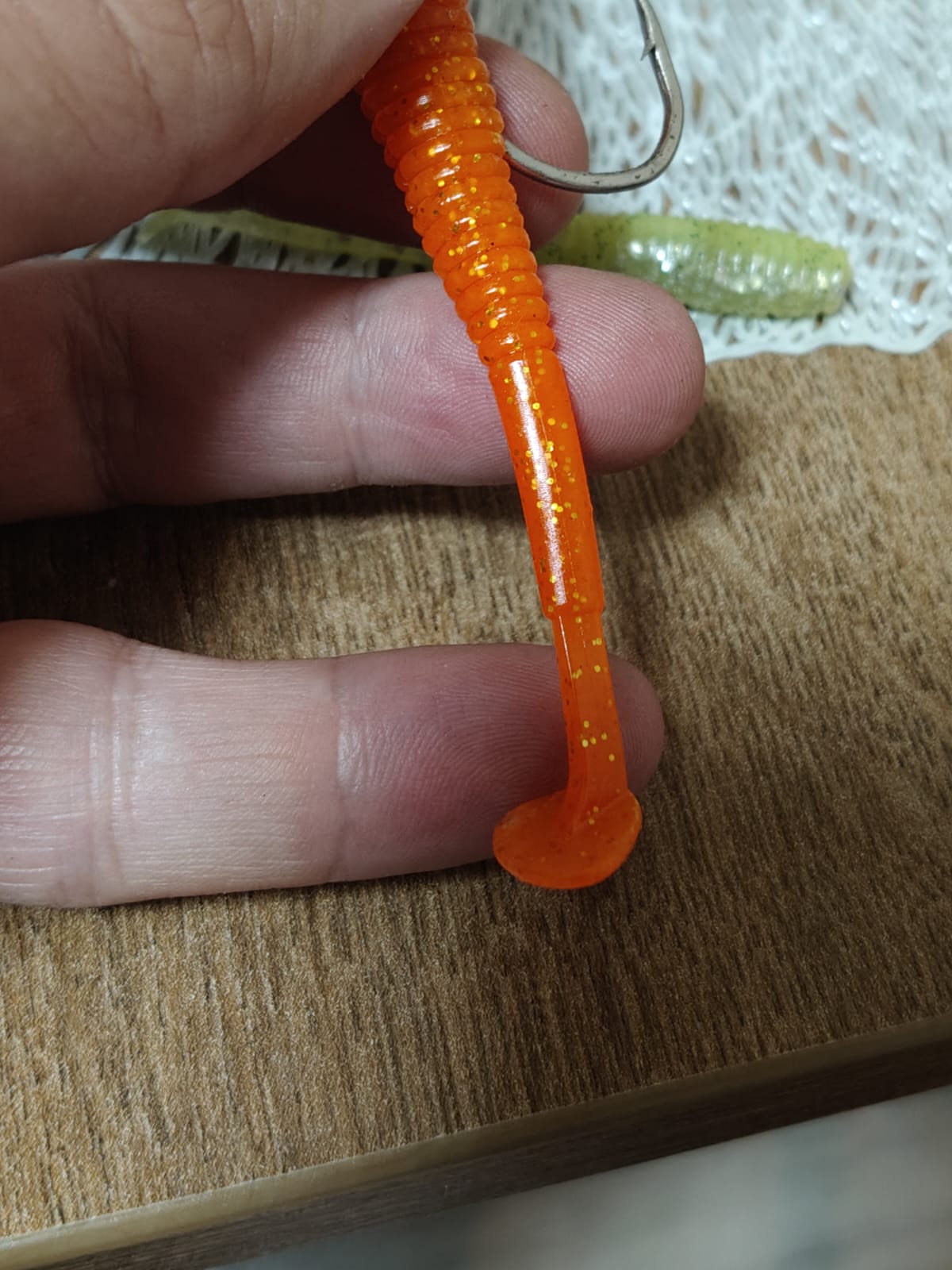 Такое положение приманки от дна делает ее более заметной и удобной для атаки. А атак может быть много! И как столь миниатюрная приманка из разряда съедобных переживает такие напасти, спросите вы? Да просто отлично, если смотреть в разрезе съедобных приманок! Плотный силикон в хвосте помогает минимизировать потери хвостовых плавников, однако от щучьих зубов это не спасает. Ну а более жесткий силикон в центральной части приманки помогает долго не прибегать к использованию силиконовых стопоров при монтаже на открытый одинарный крючок (в шарнирном сочетании с грузом, разумеется).