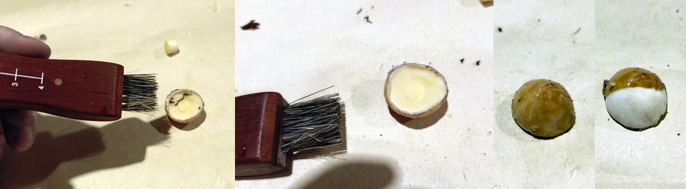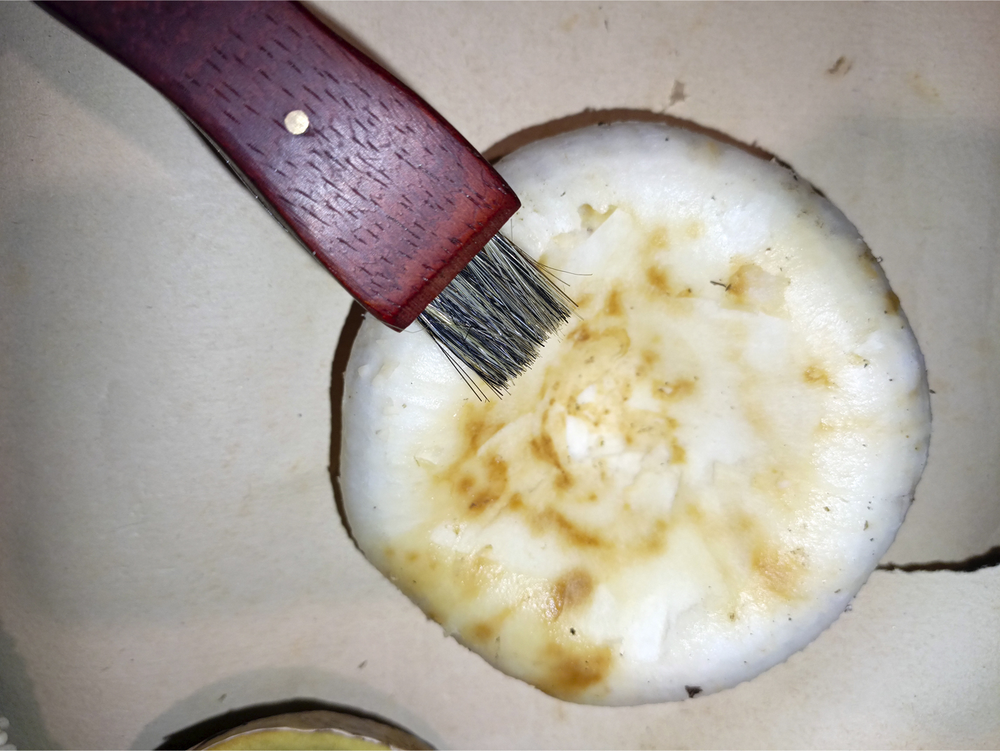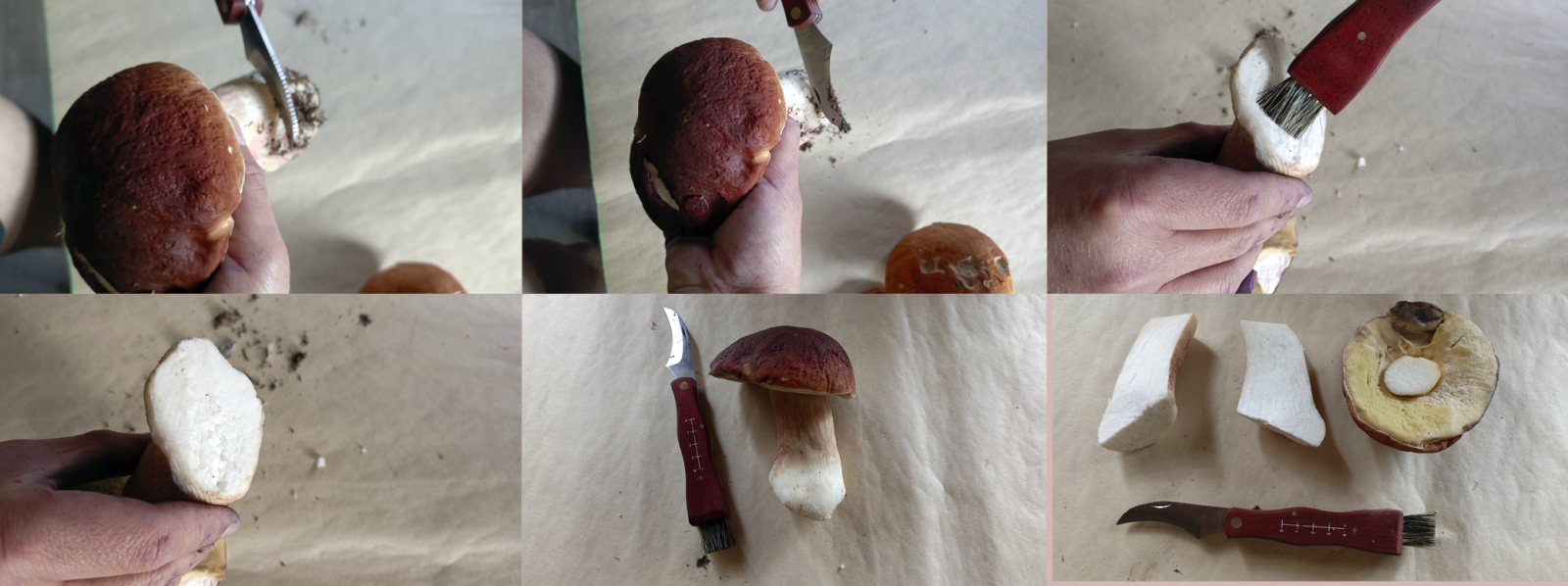 Окончательная чистка уже на первых порах мне показалась более удобной специальным ножом от Kosadaka (на примере крохотных маслят, у которых ко всему прочему еще необходимо снимать пленку со шляпки: обычным ножом эту процедуру выполнять гораздо менее удобно).