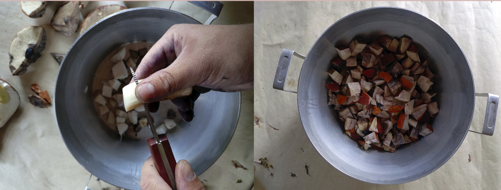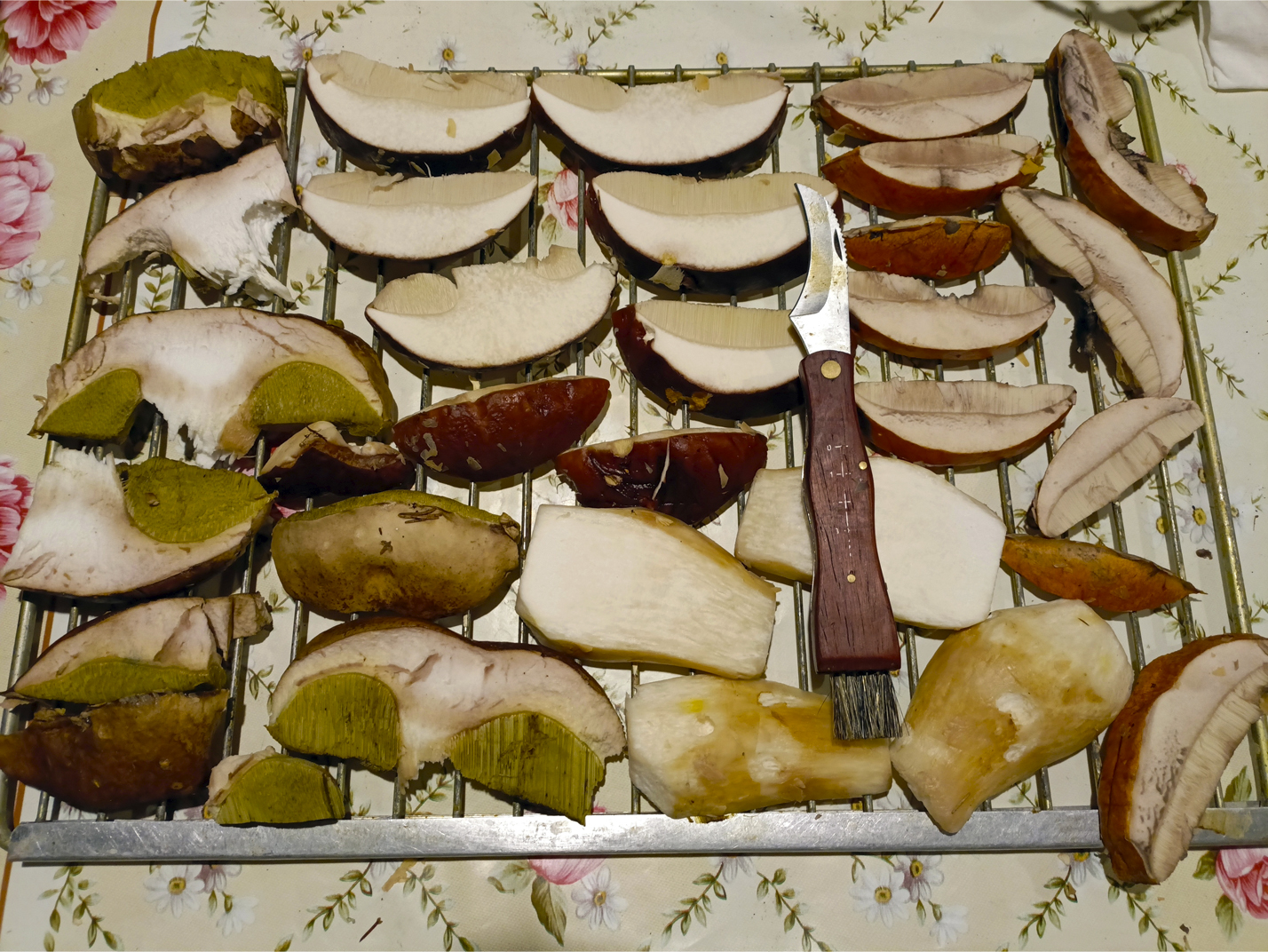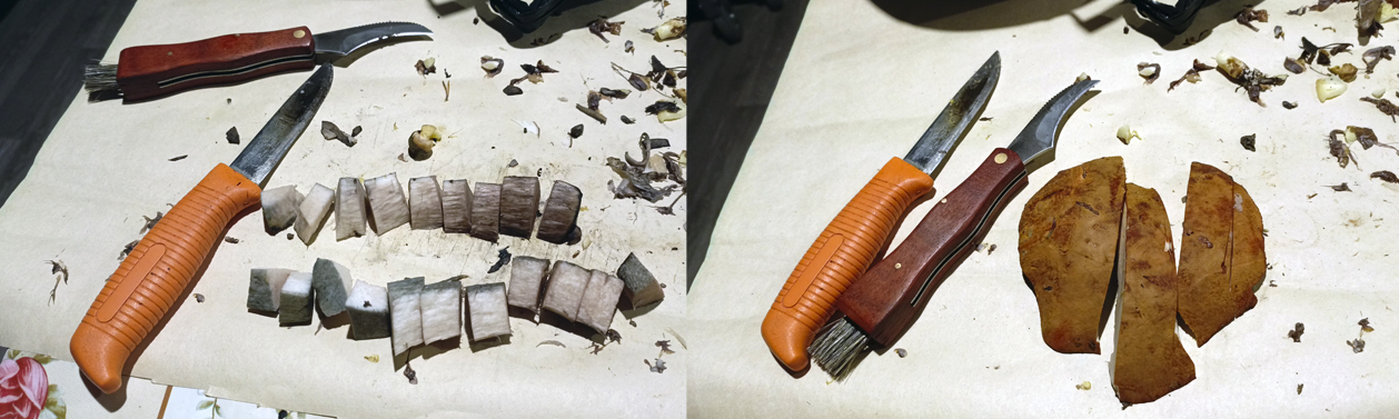 Подготавливаем грибы к сушке с помощью ножа N-M55 KOSADAKA.