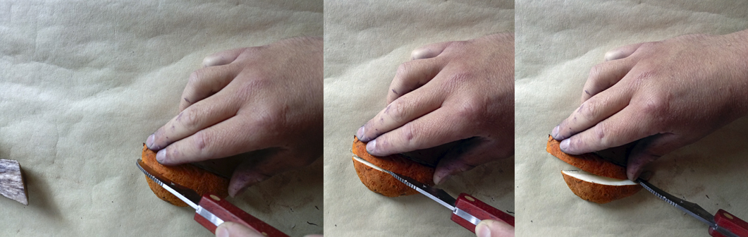 Тем не менее, этот нож также сможет пригодиться в саду, например, для прививок растений. Он весьма не дурно чистит овощи. Например, некрупный картофель. Острым концом удобно вырезать глазки, а острое закругленное лезвие легко счищает кожуру.