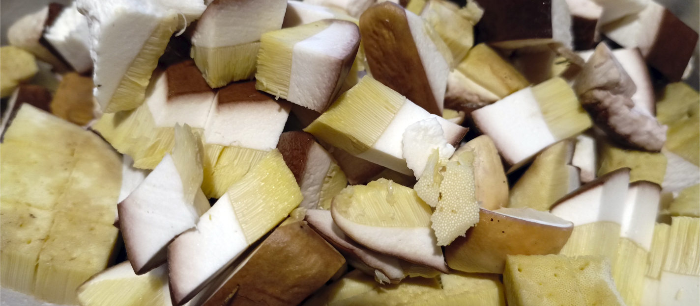 Собирать грибы все любят. А вот когда надо их чистить и варить, то аудитория сразу куда-то рассеивается. Но как я и сказал, с этим ножиком основная работа проделывается еще в лесу. Мусора остается мало. Нужно лишь поскрести ножки от чешуек, чтобы гриб не горчил после варки, да нарезать весь собранный улов кубиками.