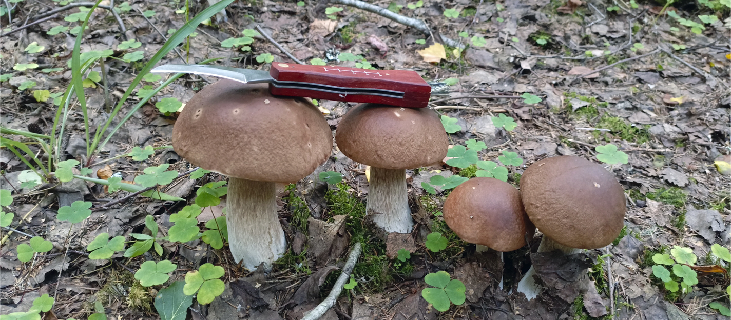 Этот нож был испытан со всеми доступными в наших краях видами грибов: белые, подосиновики, волнухи, рыжики, грузди, - сбор любого из них удобен.