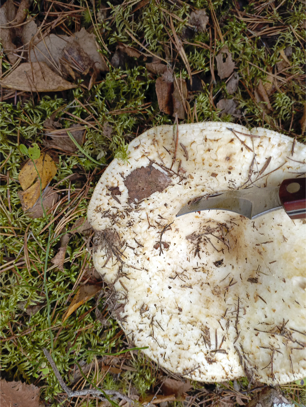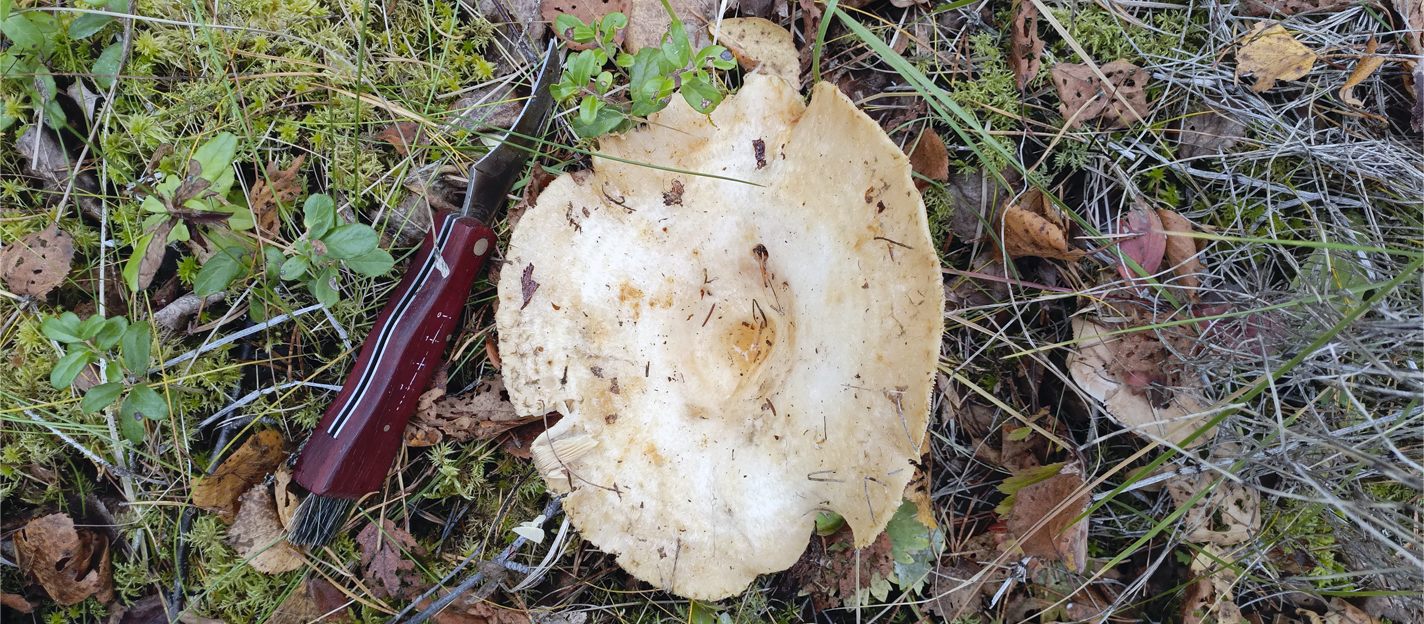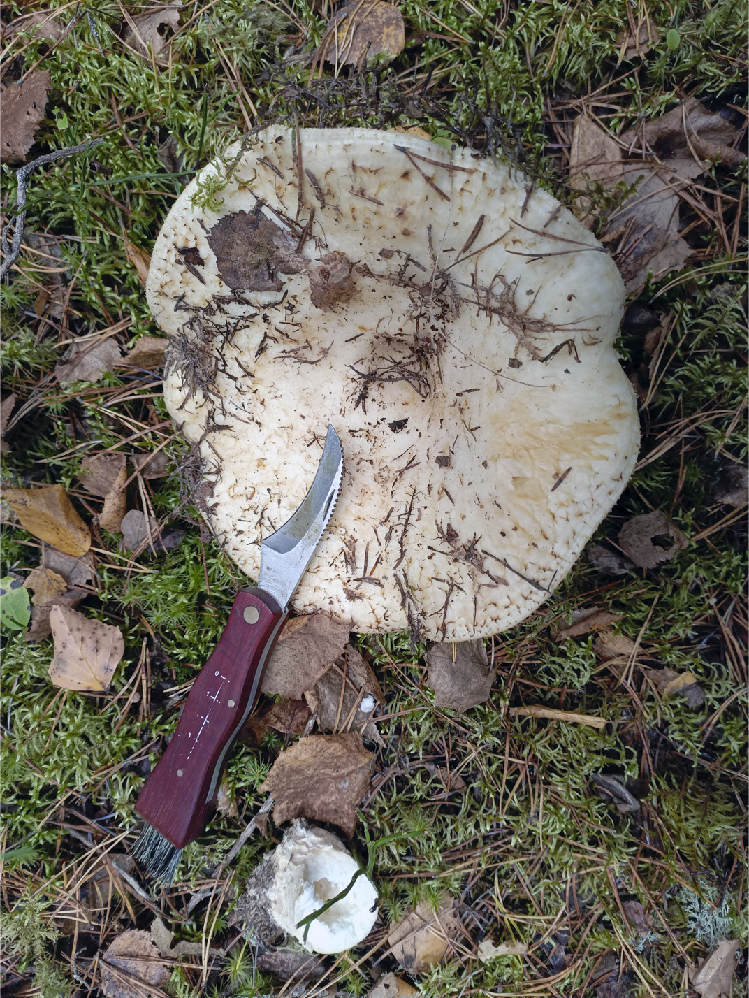 Вот так качественно способен этот ножик очистить шляпку белого груздя.