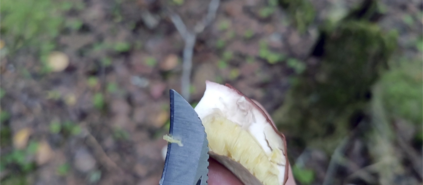 Как я уже написал выше, несмотря на короткий клинок в 6 сантиметров, нож отлично обрабатывает грибы любого рамзера, в том числе крупные боровики и подосиновики. Его серповидная форма с заостренным концом поможет справиться и с разделкой толстой ножки, и с обрезкой широкой бахромы. Изогнутым лезвием гораздо комфортнее счищать мусор с выпуклых частей грибов.