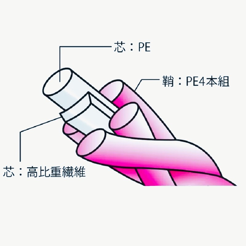 Никаких тестов с микрометрами, динамометрами и гирьками я, разумеется, не делал, это школьники пусть развлекаются, мне и так указанной разрывной нагрузки более чем в 3кг, предостаточно для ловли легкими и сверхлегкими снастями на малых и микроречках. Единственное, что сделал, это почитал о шнуре Shooter Defier D-Braid в первоисточниках, так сказать. Оказалось, что в этой нитке есть одна затейливая «изюминка» в виде некоего сердечника, который представлен отдельной нитью PE с какой-то полосой неведомого материала и как бы оплетен сверху четырьмя основными нитями PE. То есть шнур получается пятижильный. Материал полоски сердечника так и остается для меня загадкой, если кто в курсе - расскажите в комментариях о нем. Знаю только, что этот сердечник делает шнур Shooter Defier D-Braid тонущим, что тоже радует, с такими нитками в ветренную погоду ловить комфортнее, их на воду проще положить, что бы ветер не выдувал плетню дугой и не тащил легкую приманку к поверхности. На японской картинке плетение Shooter Defier D-Braid выглядит вот так: