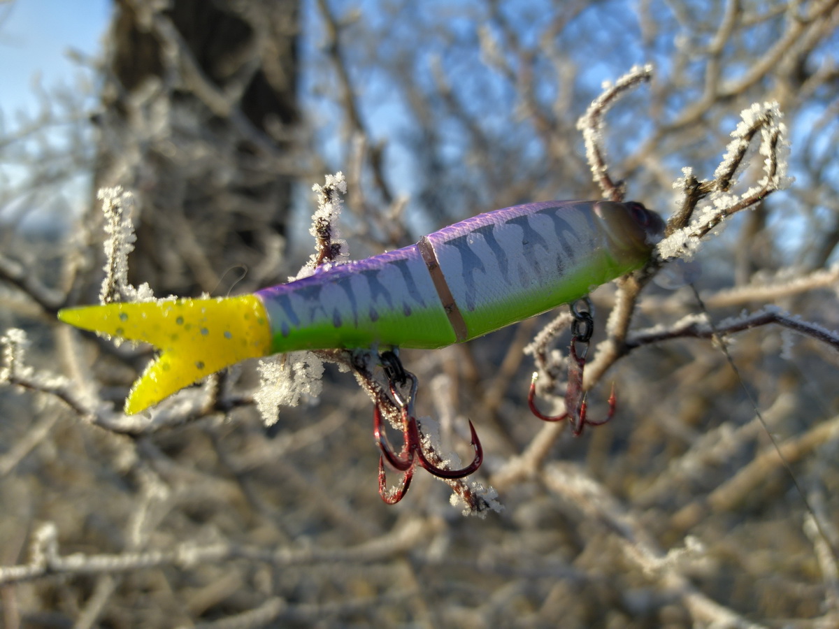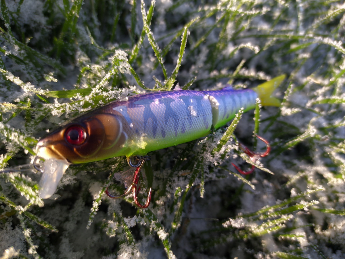 Ну да ладно, делать с этим воблером надлежит вот что: мееедленная размеренная проводка с мягкими рывочками, лучше одиночные серии рывков, чем двойные, дайте воблеру поскользить, попереворачиваться, позастывать в позах, проявить весь свой кульбитинг вам и щуке на радость.