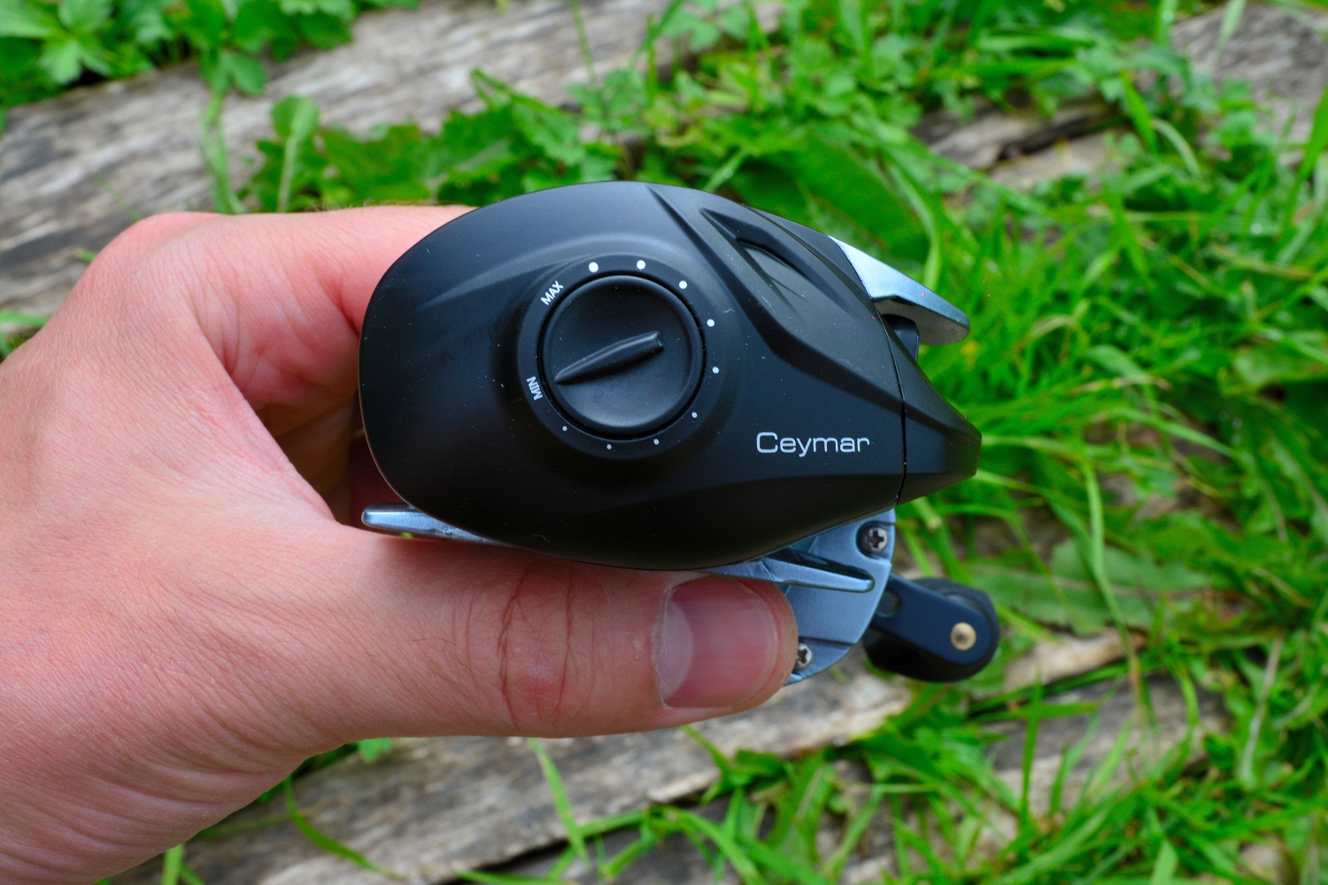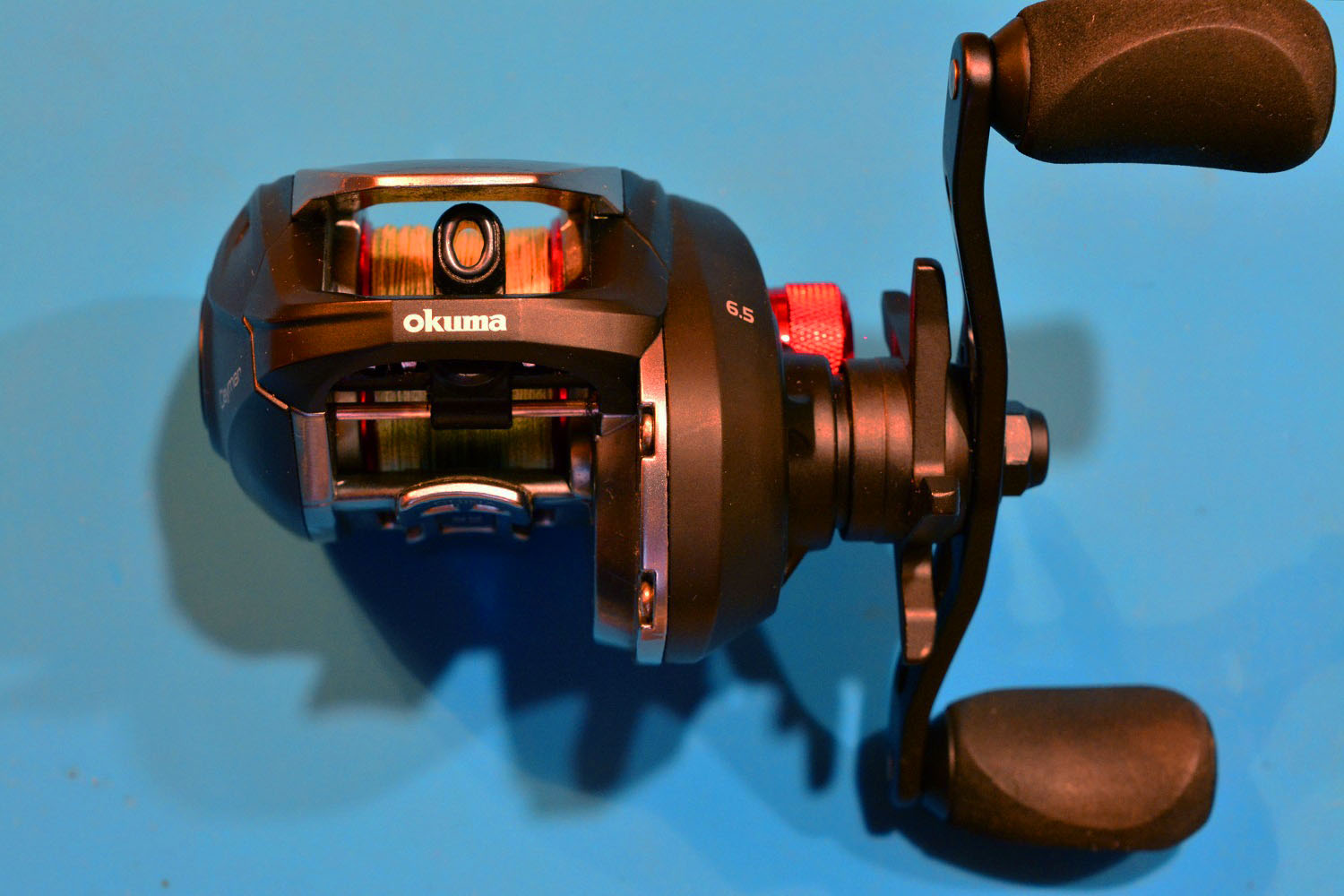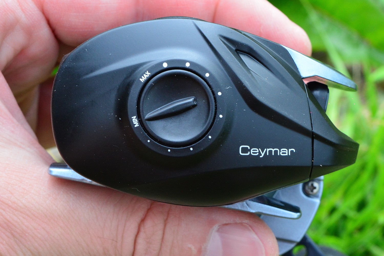 Магнитный тормоз Okuma Ceymar C101-A эффективный. Это хорошо проверяется по вращению шпули с отжатой клавишей разблокировки. На минимальном значении она вращается свободно. На максимальном же заметно замедляется и останавливается. На дешевый «безымянных» мультах разница при вращении на максимальном и минимальном значении бывает очень несущественной.