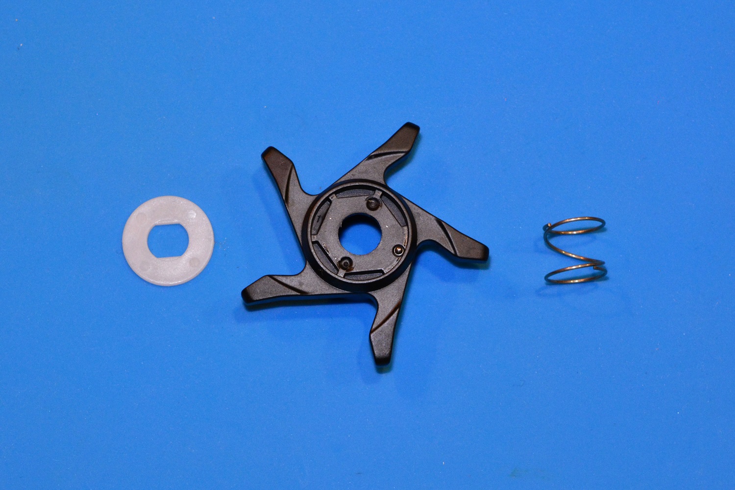 Далее снимается звезда фрикциона со специальной шайбой, под которой имеется очень маленький подпружиненный шарик, издающий щелчки при затягивании/ослаблении фрикциона, и пружиной.