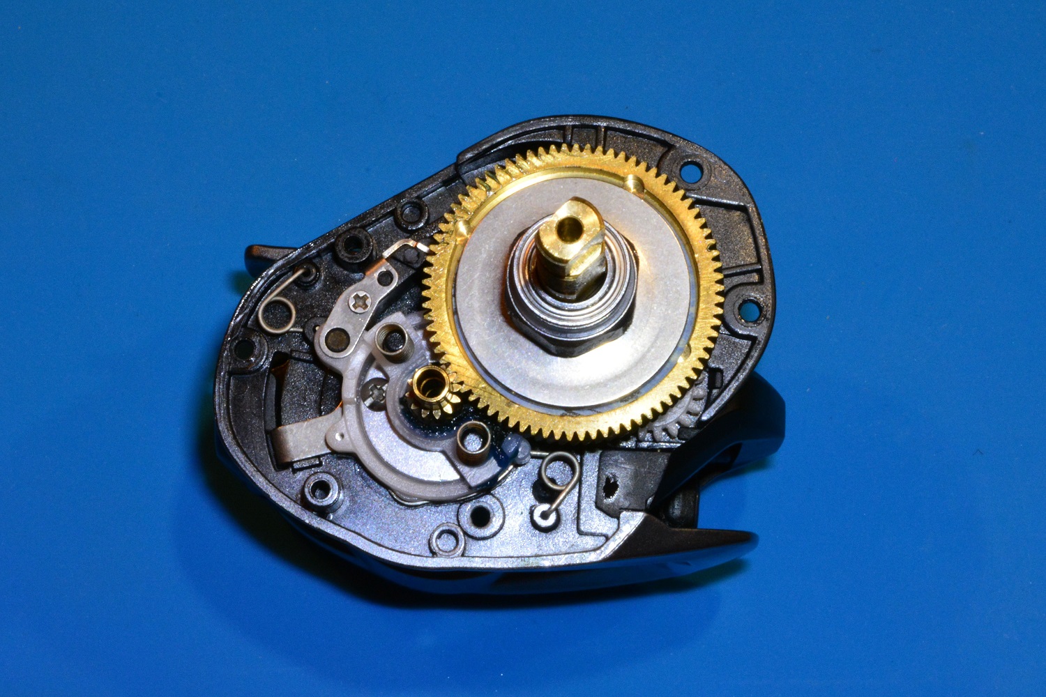 Детально в рамках данного обзора разбирать Okuma Ceymar C101-A я не стал, а просто хотел показать, что основная шестерня и пиньон сделаны из латуни, все собрано аккуратно, смазка присутствует, но при желании можно добавить.